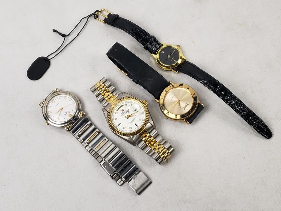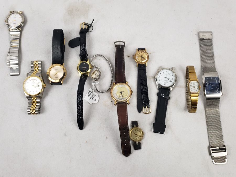 Brands include Skagen, Timex, Rolex Perpetual (crown on knob not lining up vertically as it should), Penn Regal, Anne Klein, Sheffield, Zoniak Custom 10K RGP bezel, Britannia 1/2 Dollar watch, etc. All untested. Some mechanical, some quartz.