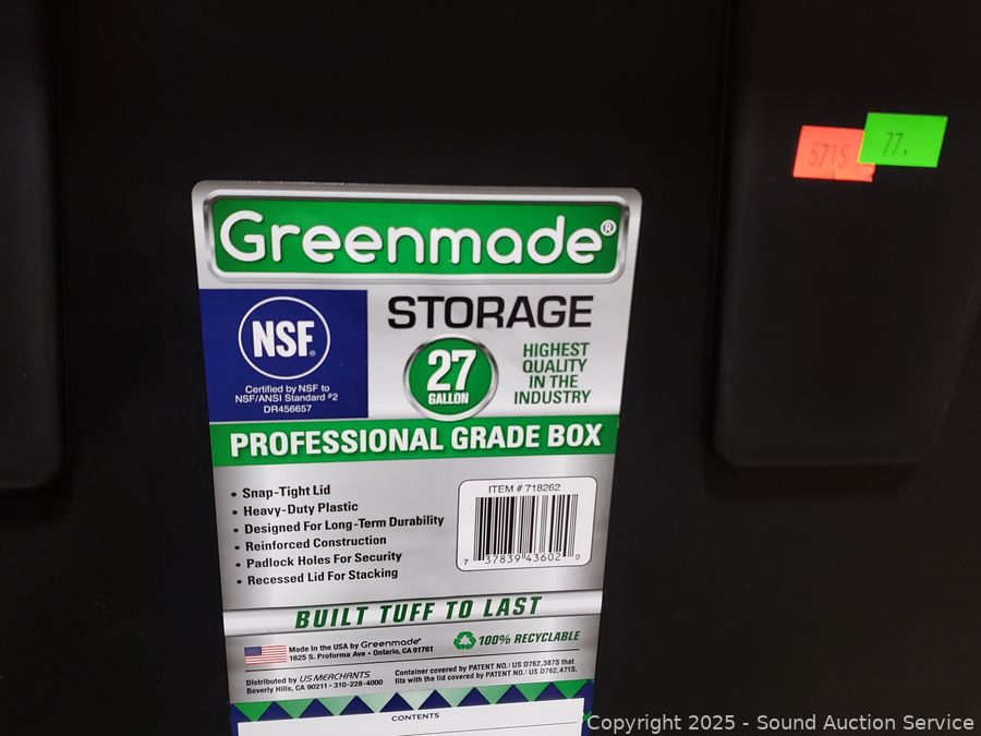 Lot #0077: 2 Greenmade Heavy Duty 27-Gallon Storage Totes w/Lids