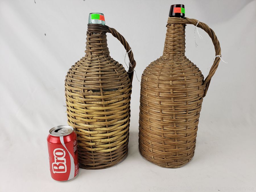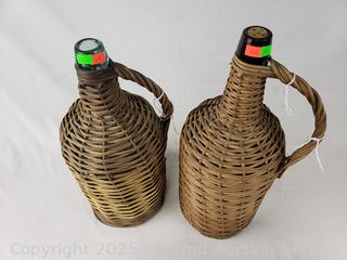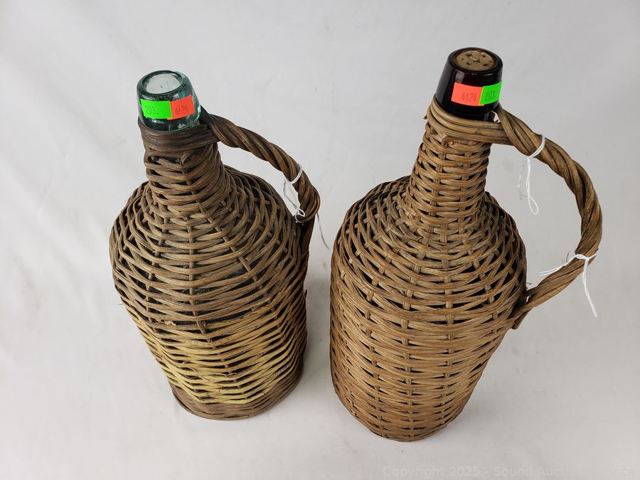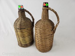Lot #0203: 2 Wicker Wove Wrapped Glass Jugs