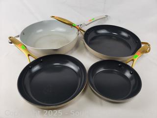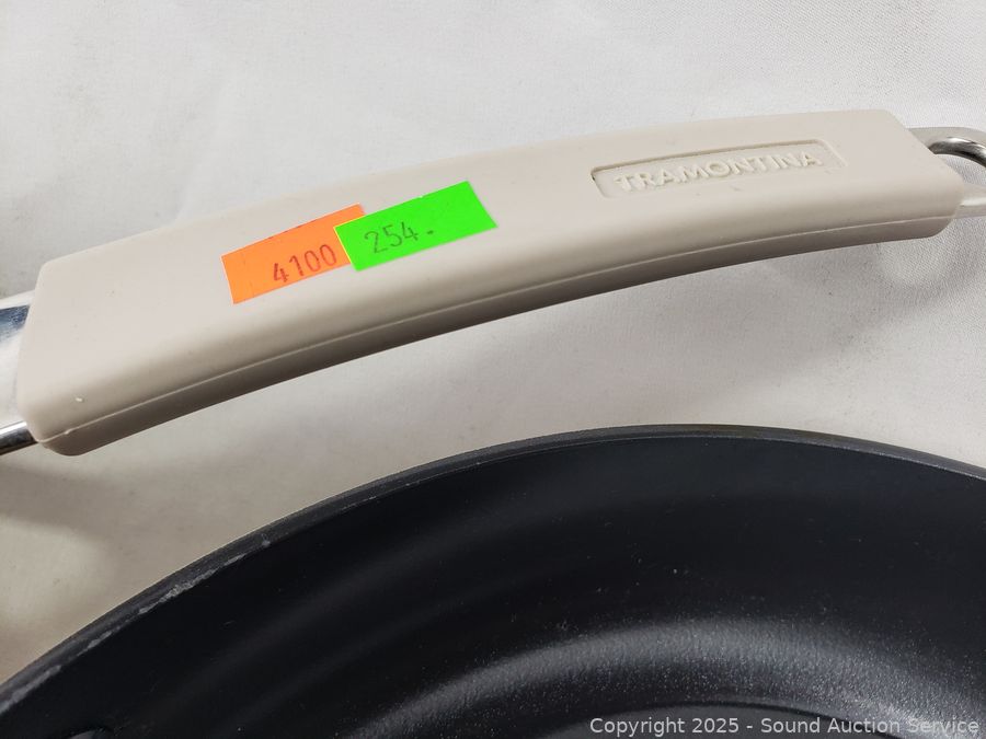 Lot #0254: 3 Green Pan & 1 Tramontina Non-Stick Skillets