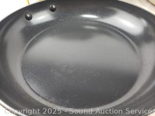 8|10|12" skillets, 12" multipurpose frypan. Some wear, dirty spots from use.