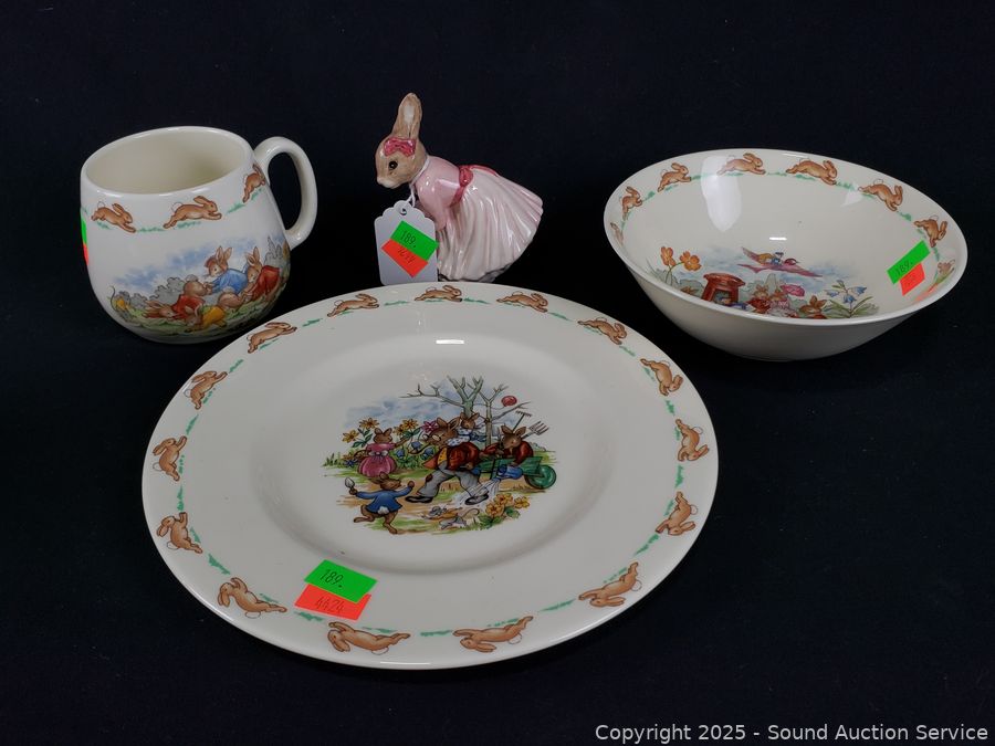 Lot #0189: 3pc Royal Doulton Plate/Bowl/Cup & Ballerina Figure
