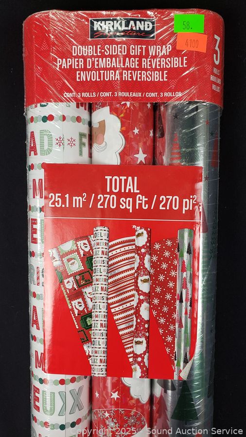 Lot #0058: 3pk Kirkland 270sq.ft. Double-Sided Gift Wrap