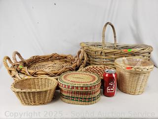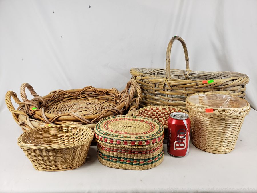 Lot #0293: 7pc Wicker Woven Basket Decor