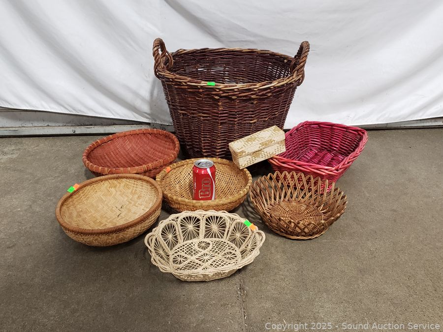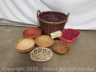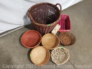 Lot #0095: 8 Wicker, Woven Baskets