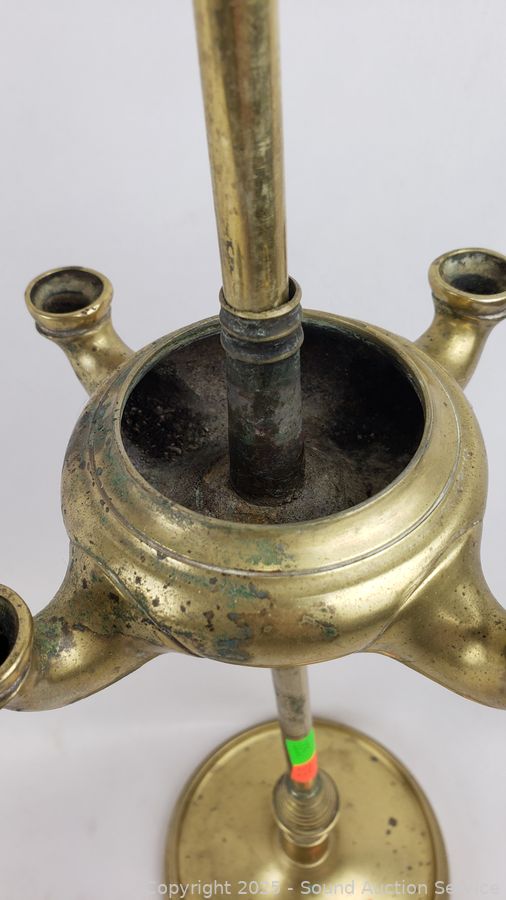 Lot #0225: Antique Brass Oil Lamp "Lucerne" or "Whale Oil" Lamp