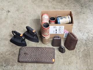 Lot #0153: Antique Phonograph Music Cylinders, Bells, Sad Irons
