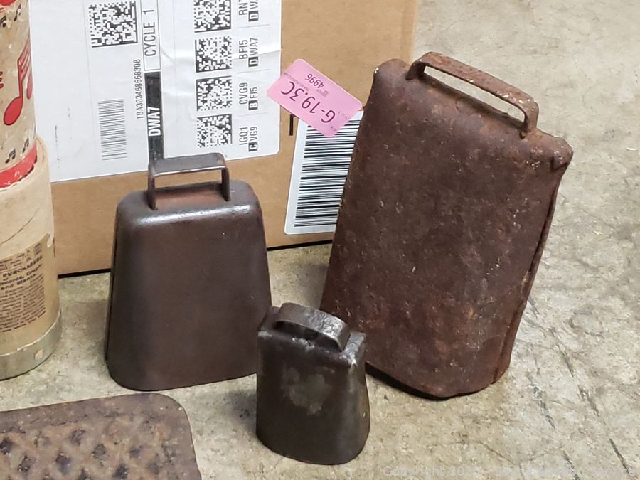 Bells and sad irons look very old, forged. Cylinders look to be mostly Columbia.