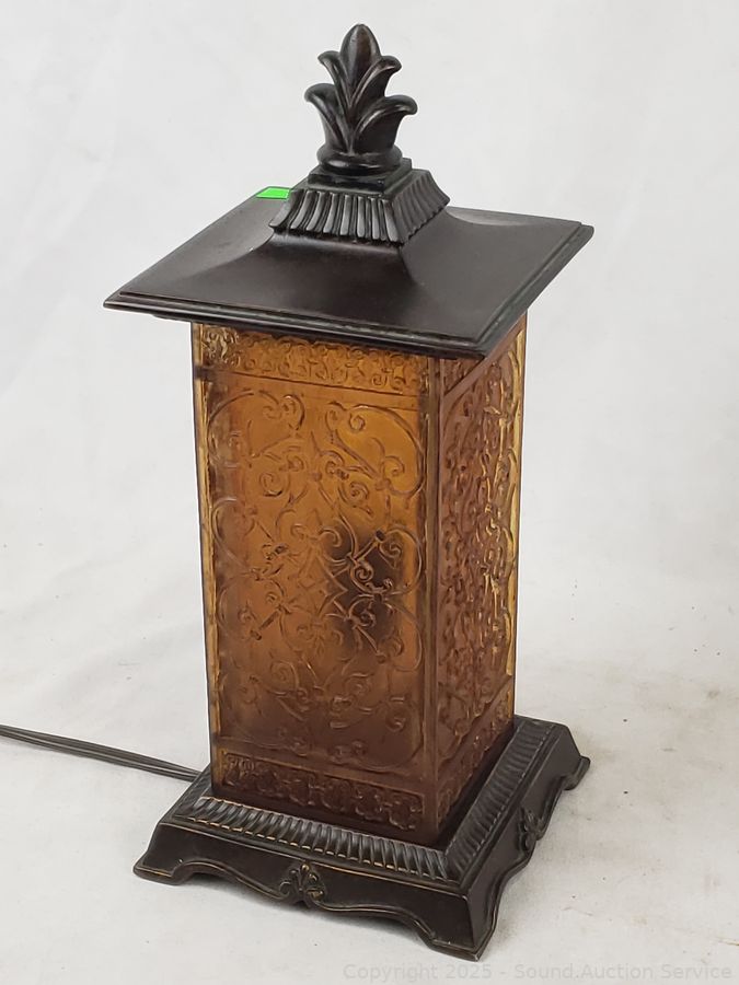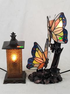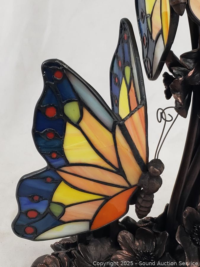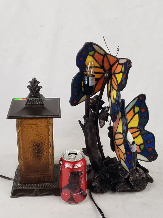 Lot #0213: Art Nouveau Butterfly & Bronze Amber Finish Lamps