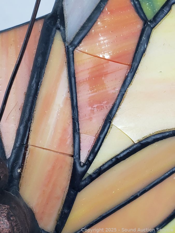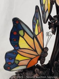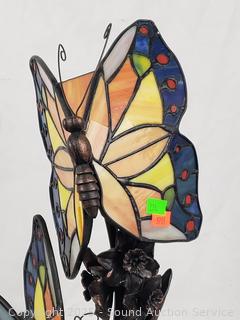 Both work, butterflies have some cracked panels. Approx. 12" to 16" tall.