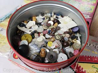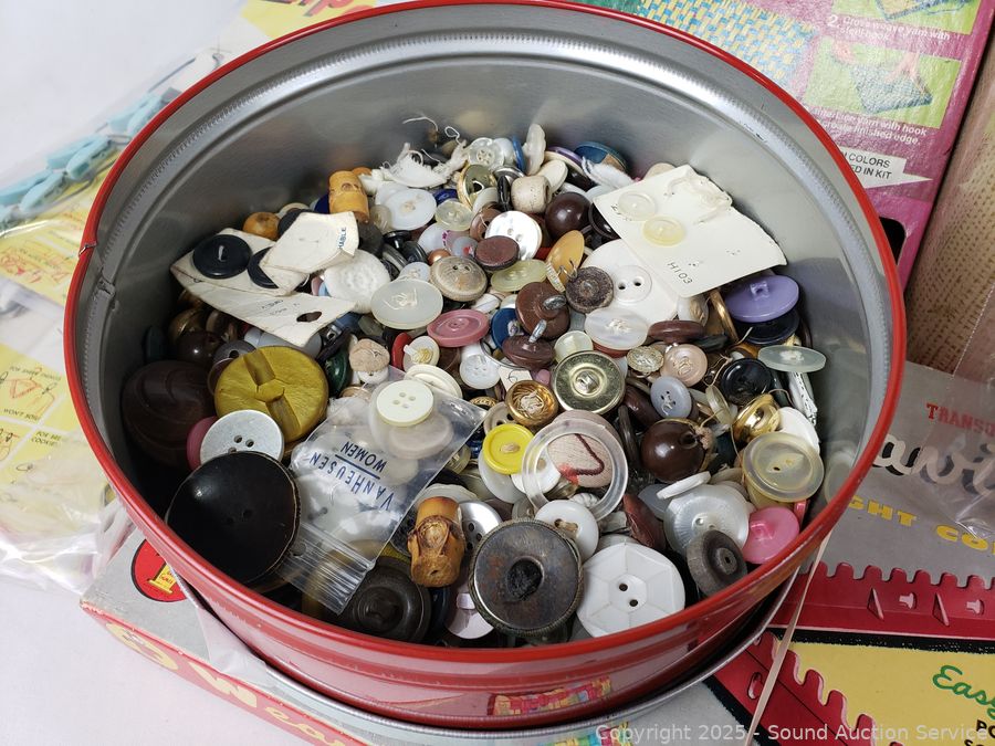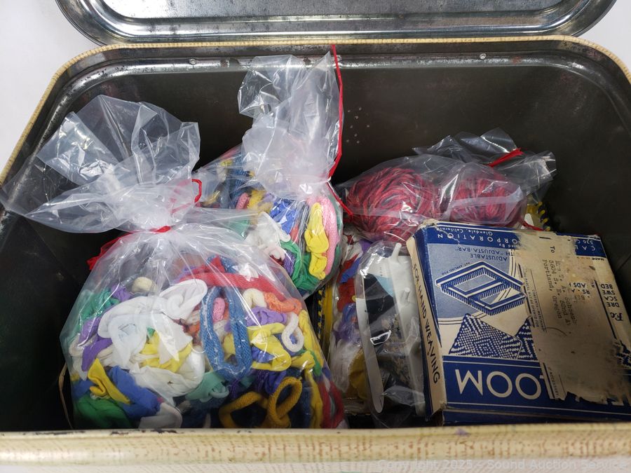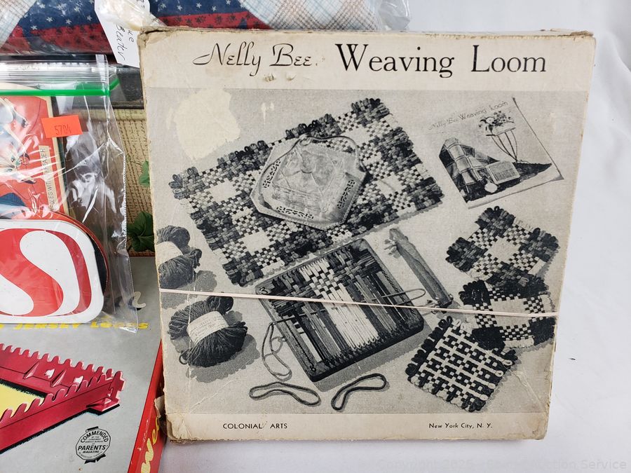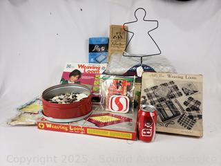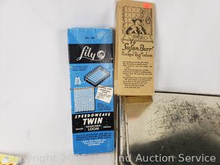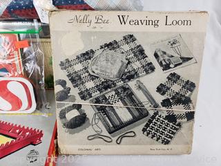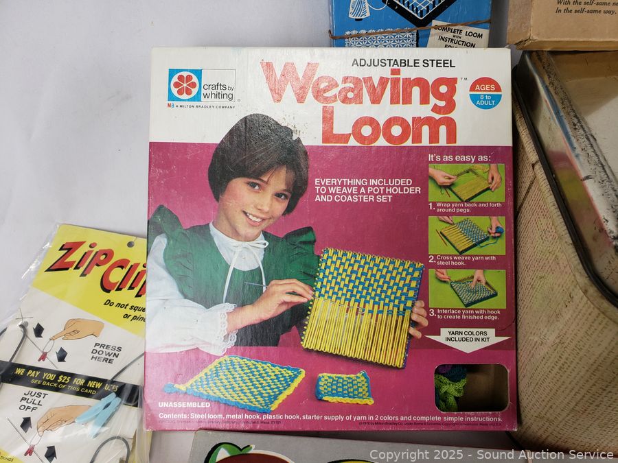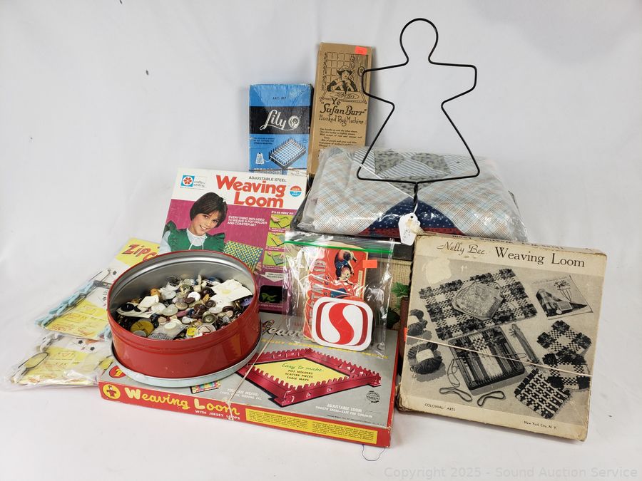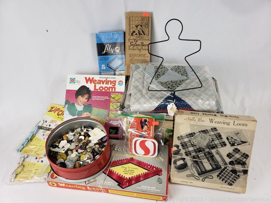 Weaving looms, vintage buttons, zip clips, etc. Refer to photos for lot contents, more details.