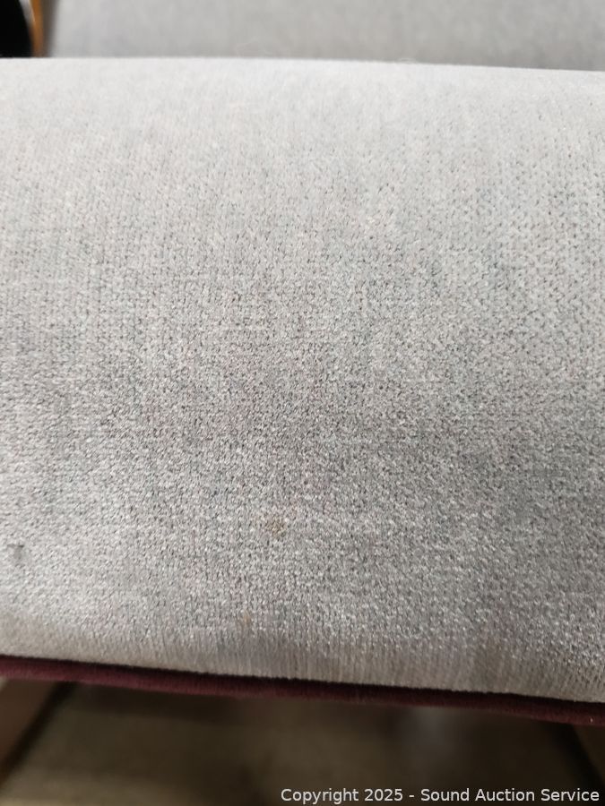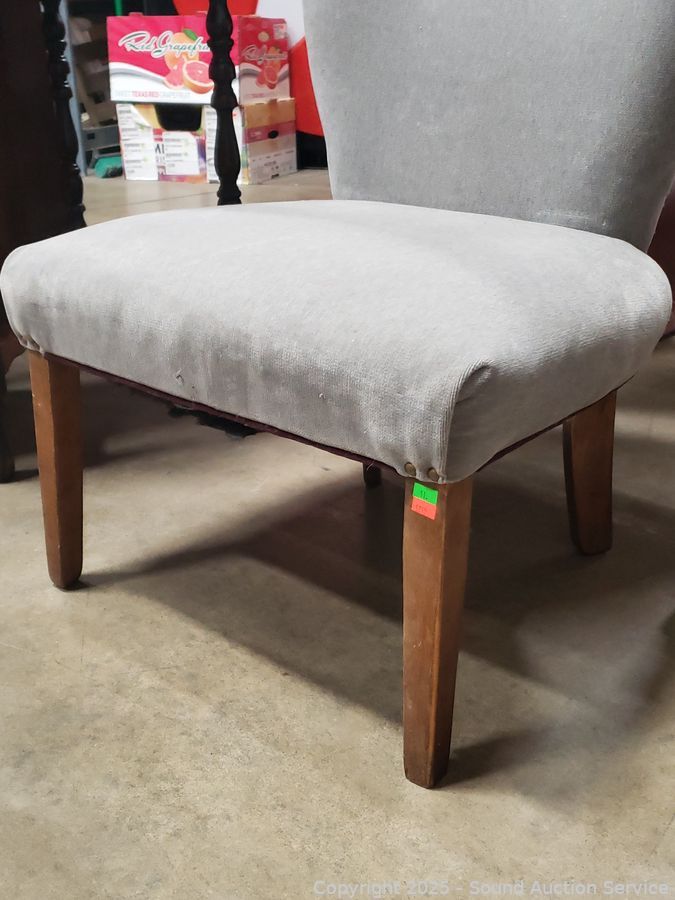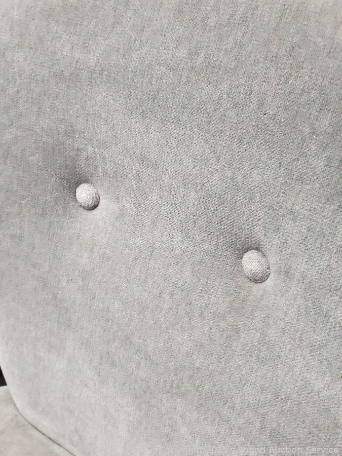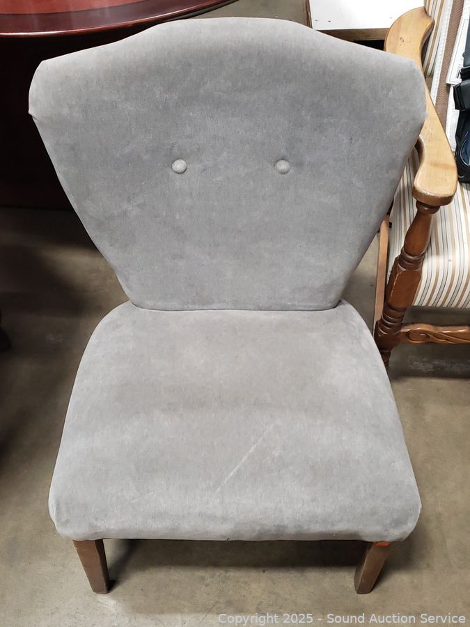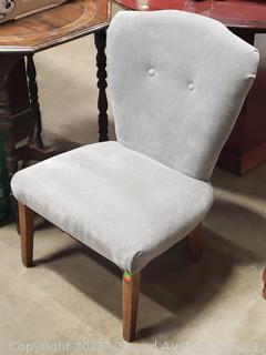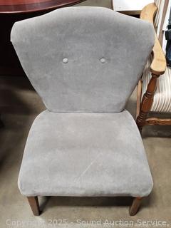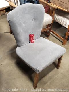 Gray Upholstered Nailhead Accent Chair - Some dusty dirty spots. 31" H x 21.5" W x 14" to seat.