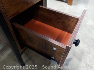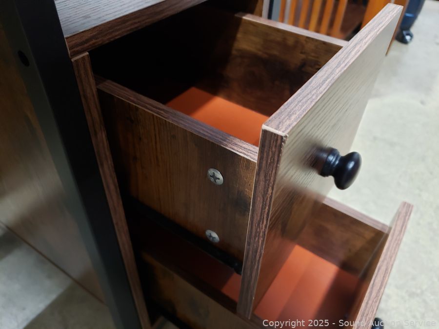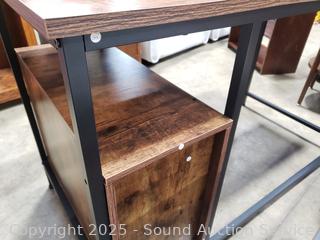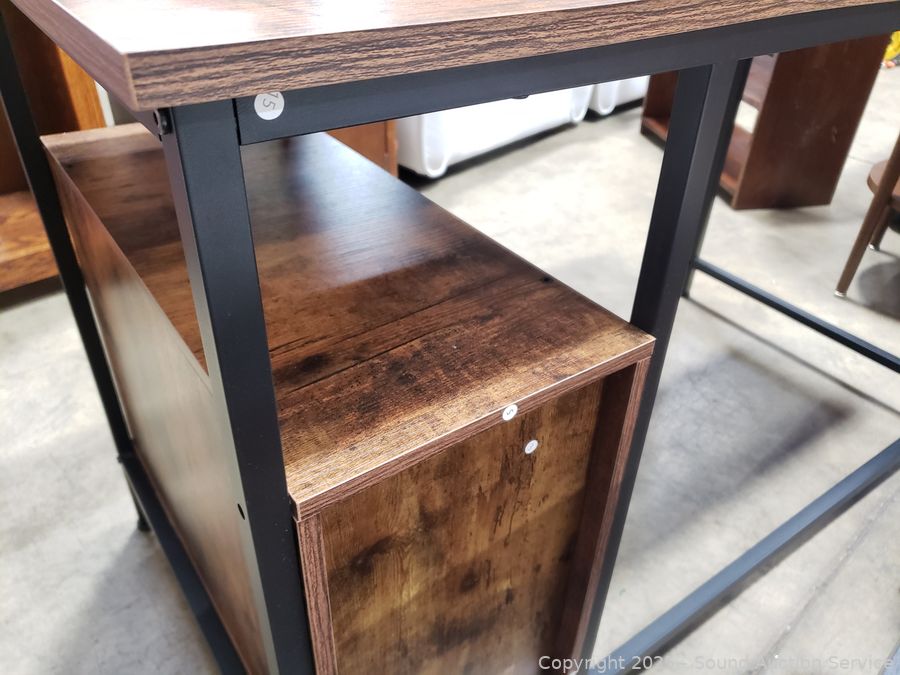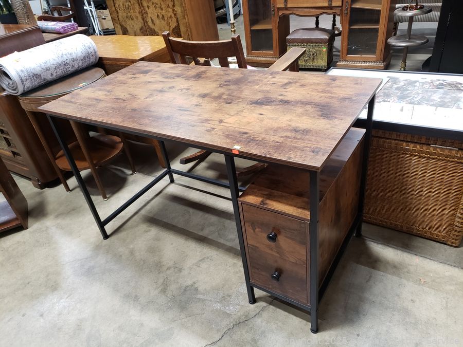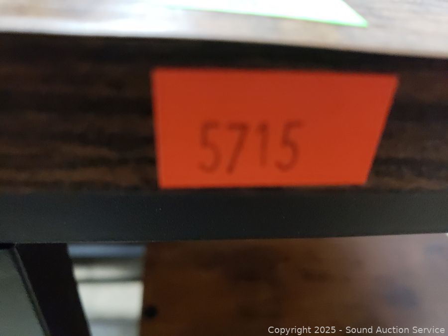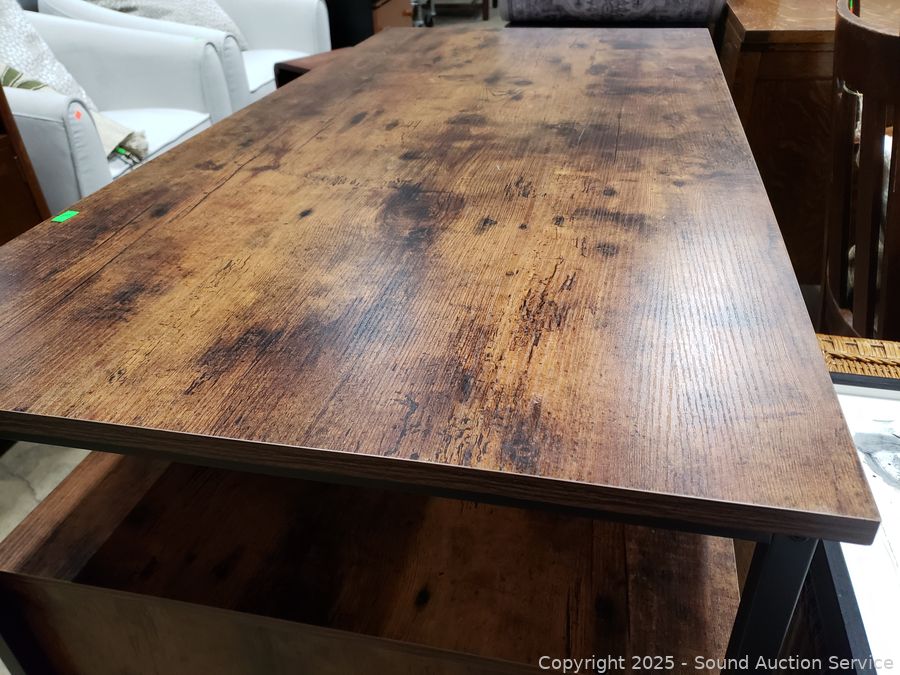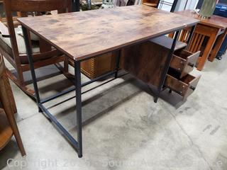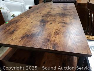Lot #0038: Contemporary Wood Grain Finish Metal Framed Desk