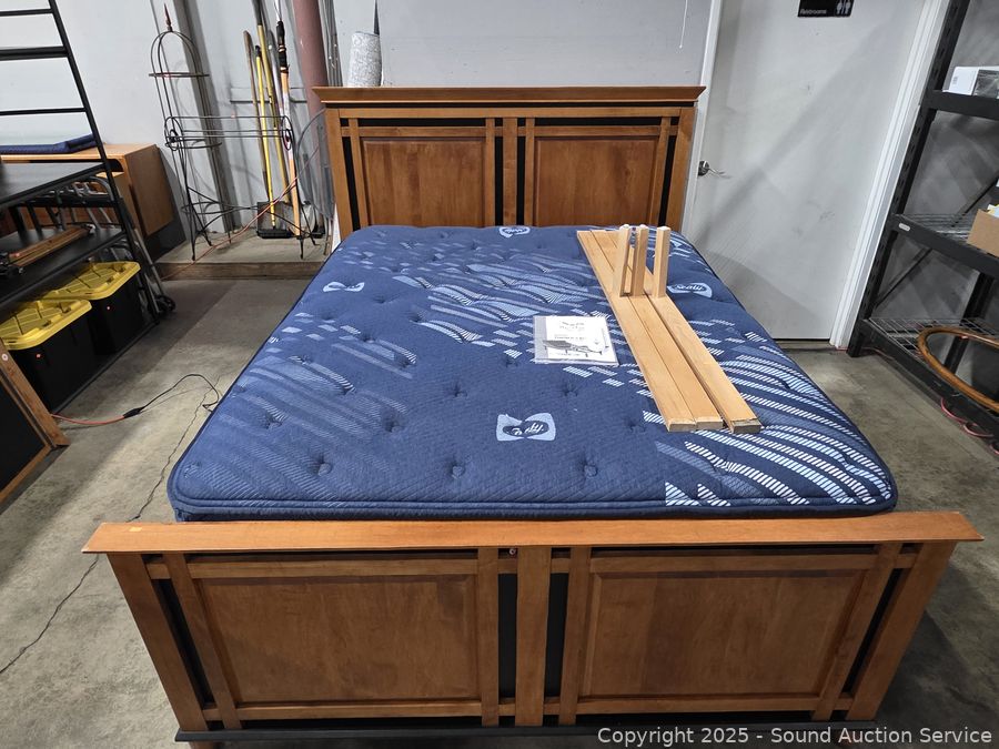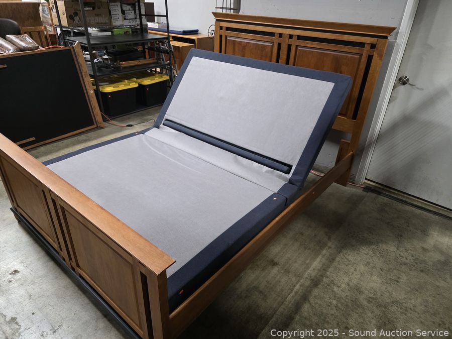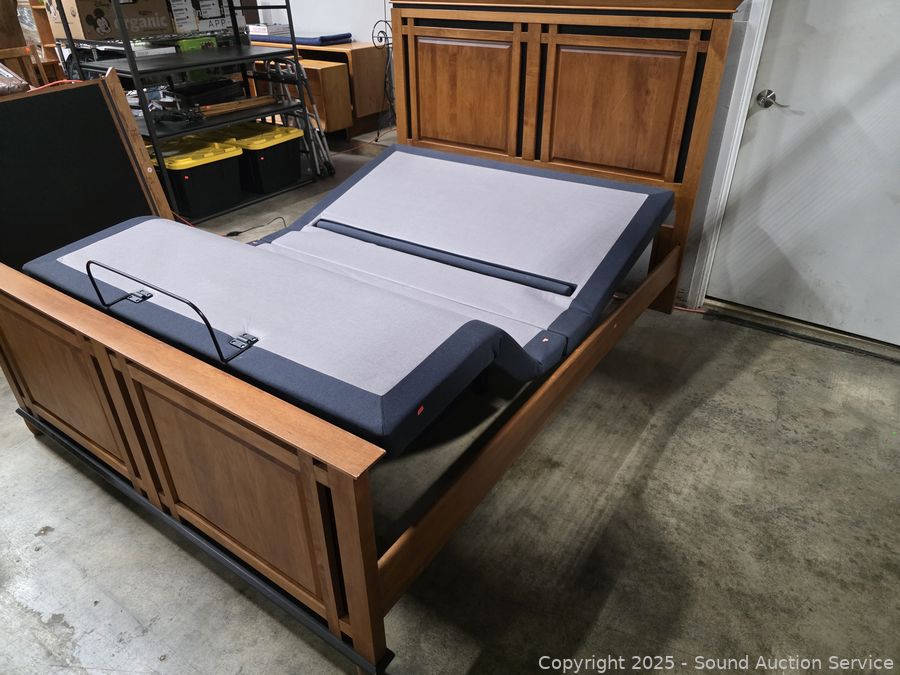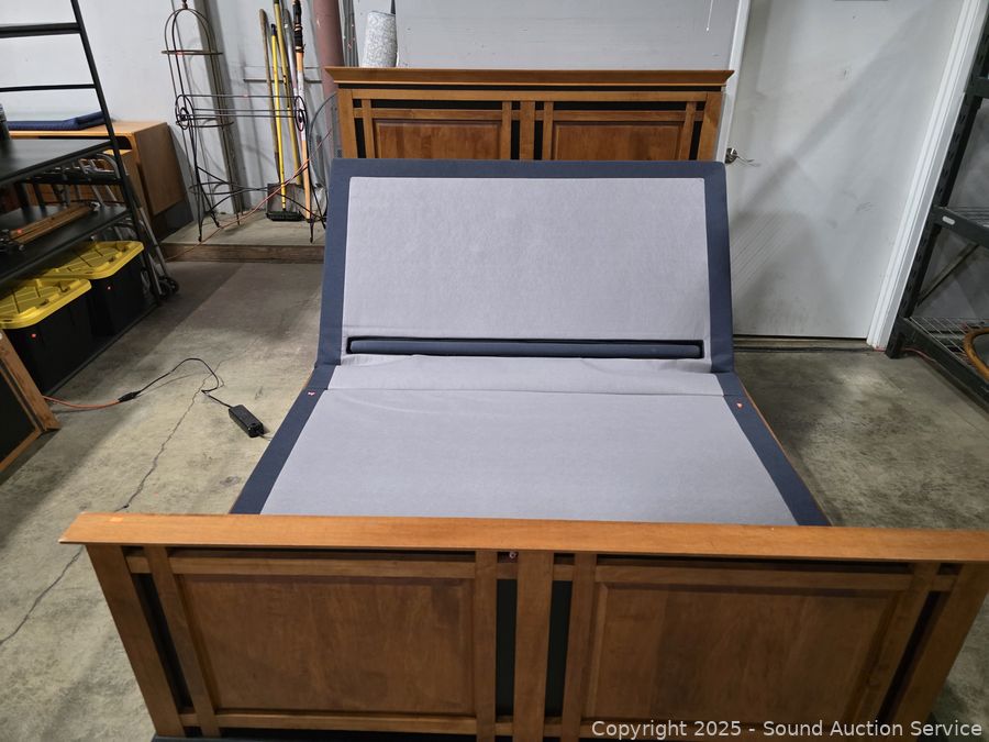 Lot #0005V: Maple Frame Sealy Pillowtop Mattress Adjustable Base Queen Bed