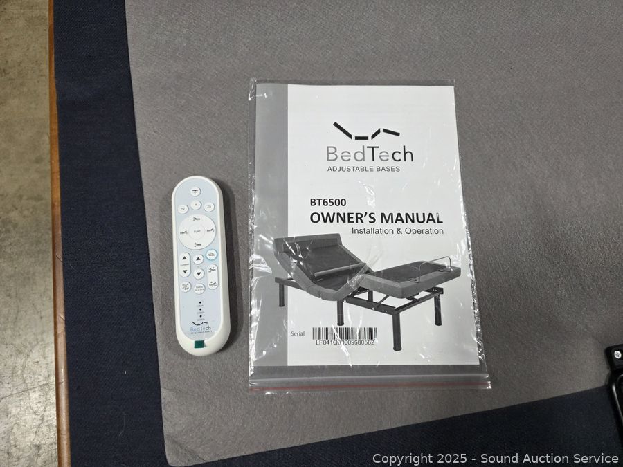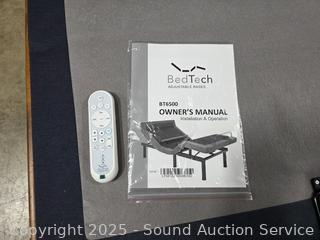 See some minor scuffs on frame, overall great condition. BedTech BT6500 adjustable frame w/lumbar, appears to be functioning as intended, comes with one remote and manual. Sealy Golden Elegance 13" queen mattress. 27" to 52" H x 66" W headbaord & footboard. Full or queen setup.