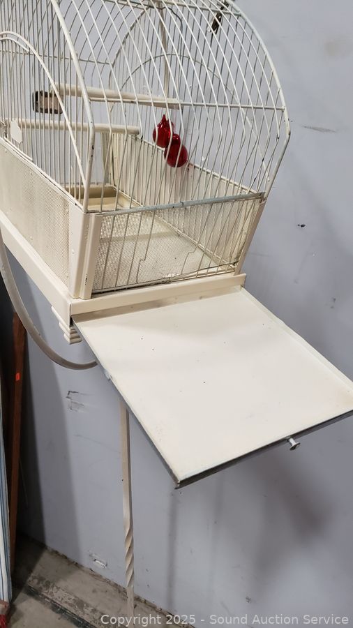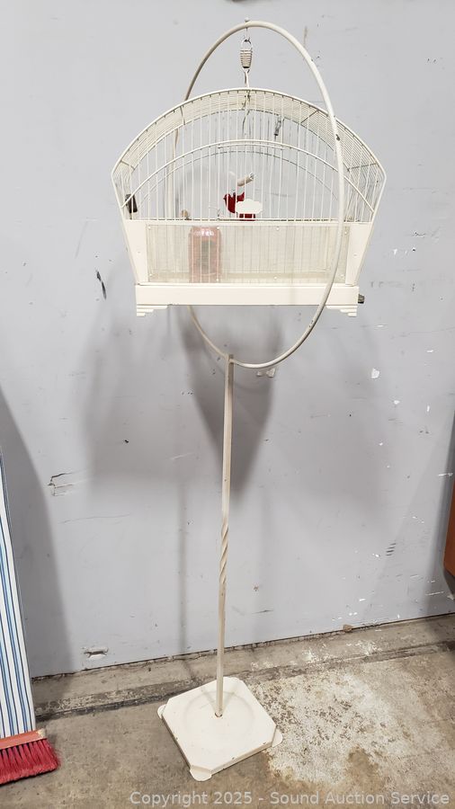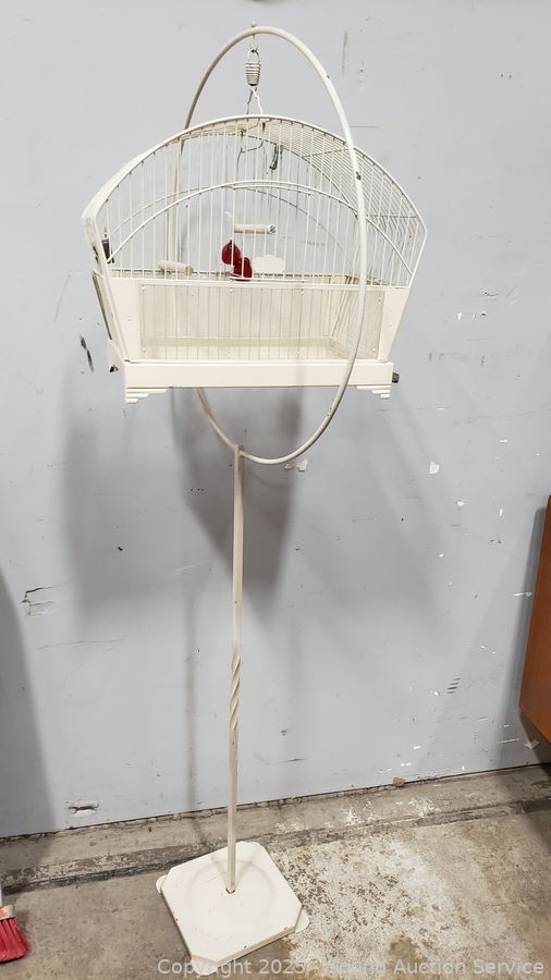 Lot #0094: Metal Ivory Bird Cage w/Stand
