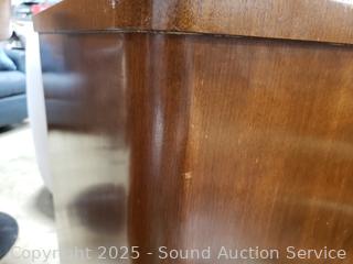 364 Lots including MCM Danish Teak Hutch, File Cabinets, Antique Zenith Radio Cabinet, Concrete Pagoda, Armillary, Antique Oak Secretary Desk Cabinet, Quartersawn Oak Serpentine Dresser, Artwork, Elec. Fireplace, Power Recliners, Vanity Dresser, Pheonix Spotting Scope, Cookware Sets, Vtg. Marbles, Vtg. Microscope, Bunnykins Figures, Mikasa Bone China Set, Vtg. Roseville Pottery, Personal Hygiene Products, Vtg. Underwood Typewriter, Assorted Cookware, Household Goods & More!!!