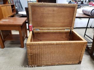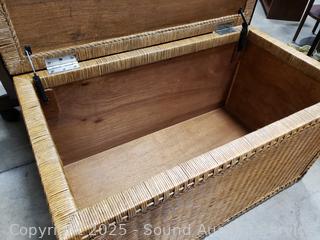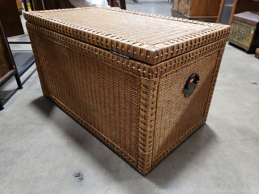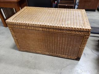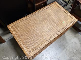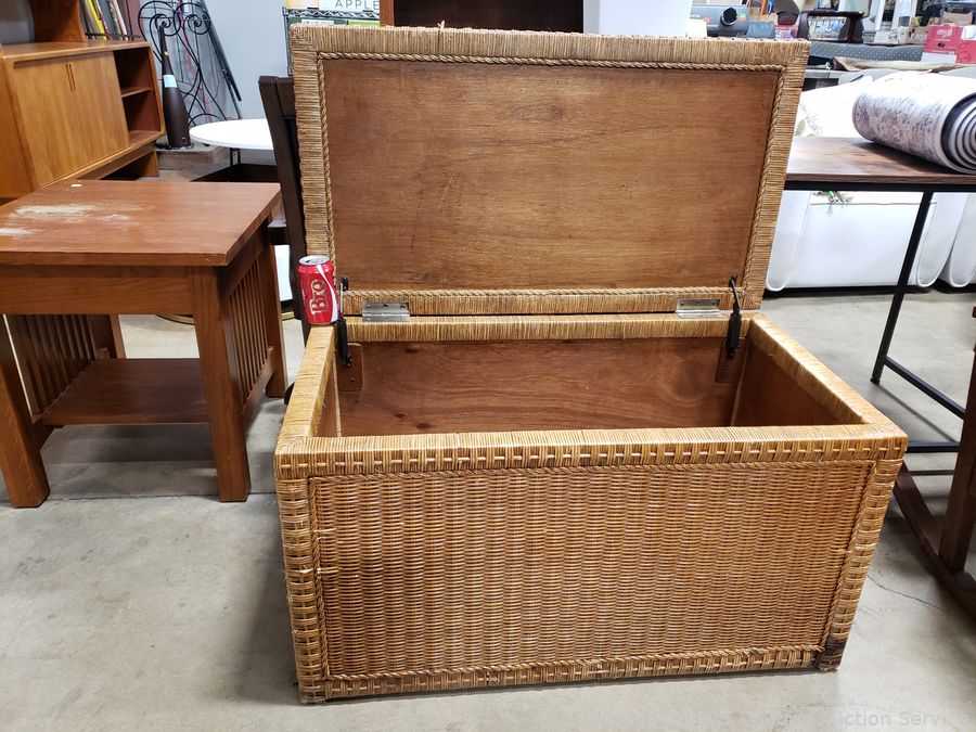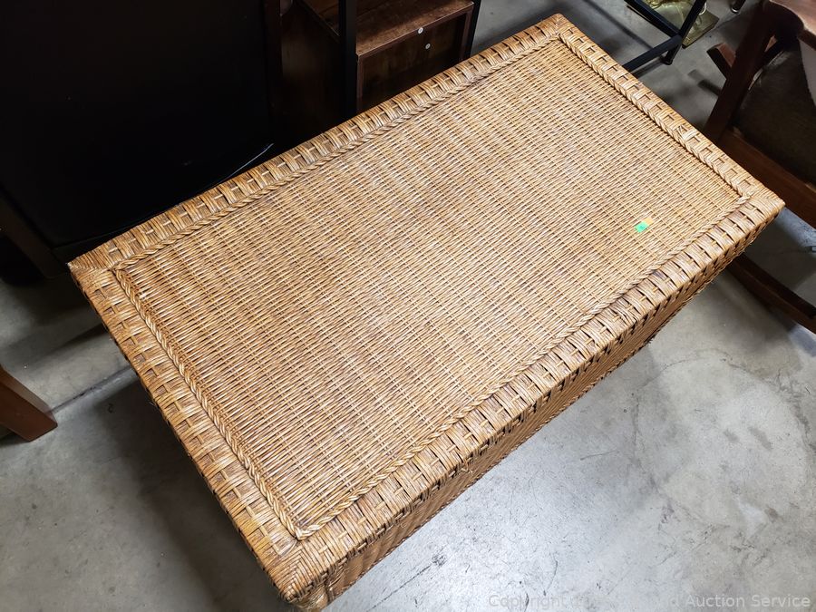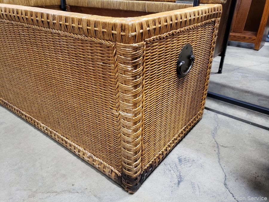 See some damage, breaks in wicker. 20.5" H x 36" W x 20.25" D.