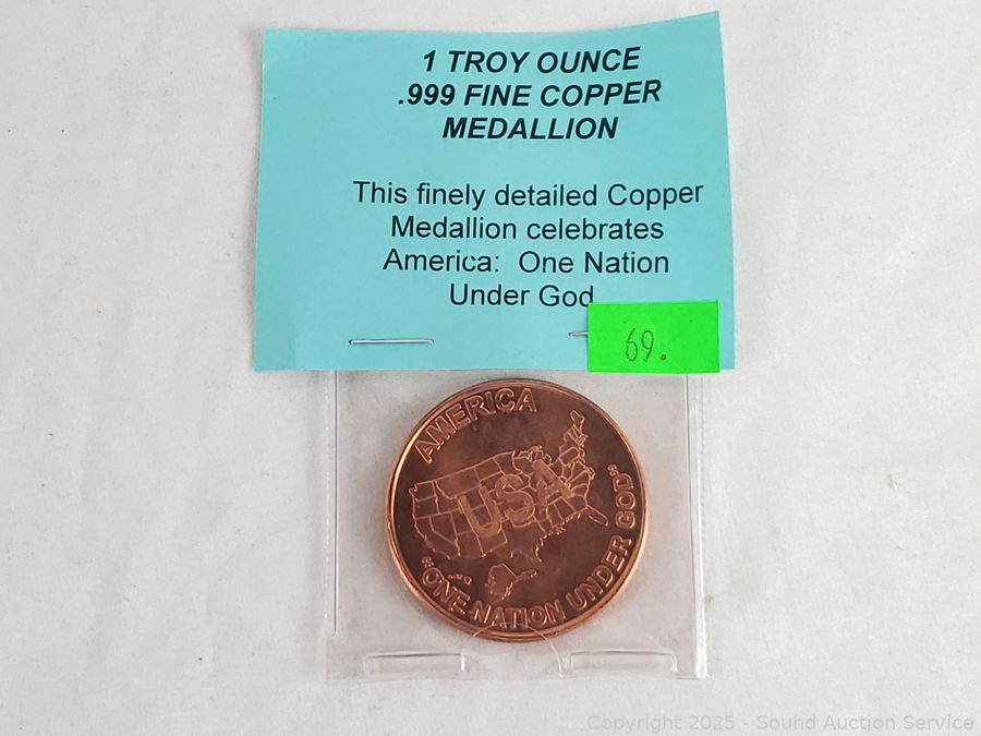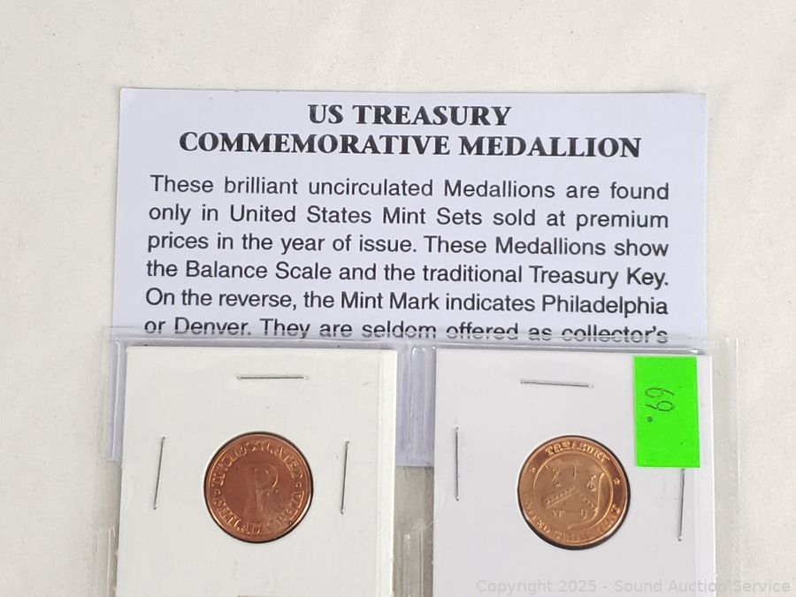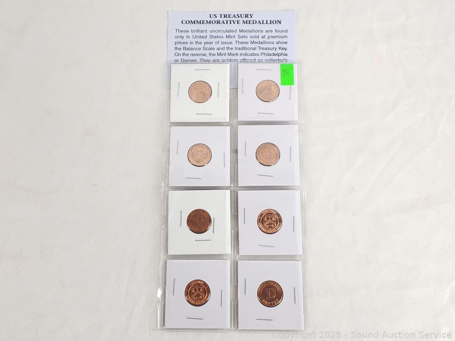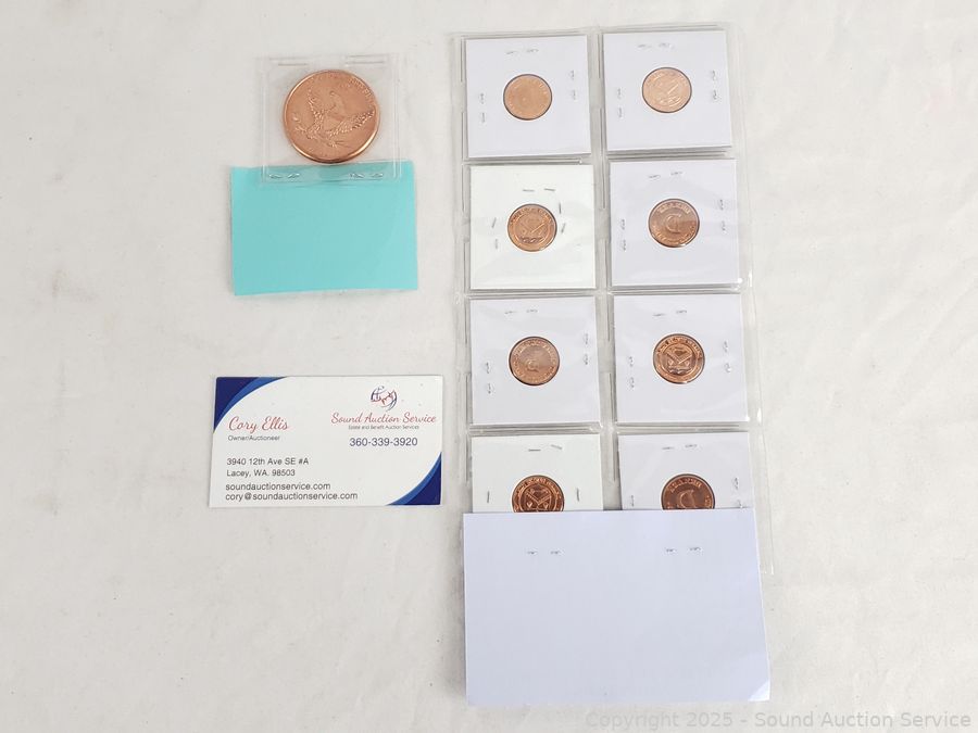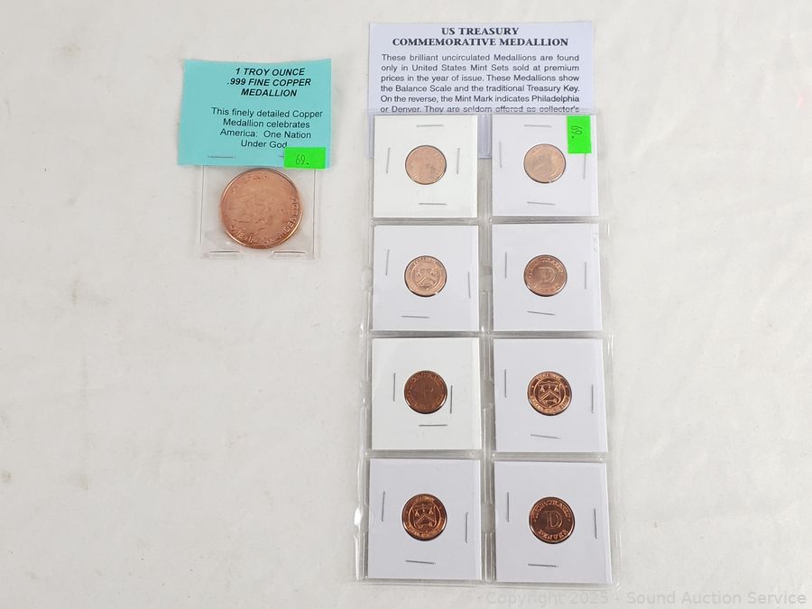 Lot #0069: 1 Troy Ounce .999 Fine Copper Medallion & 8 US Treasury P&D Medallions