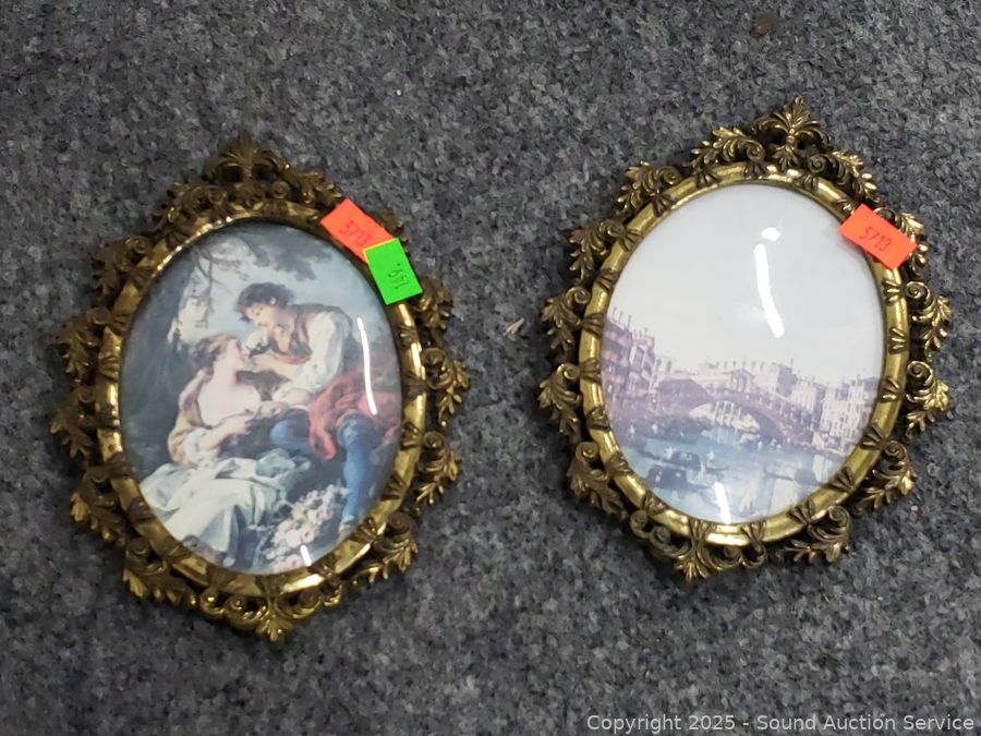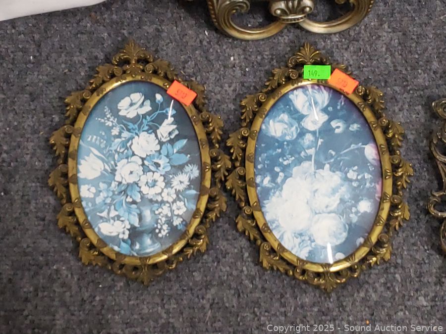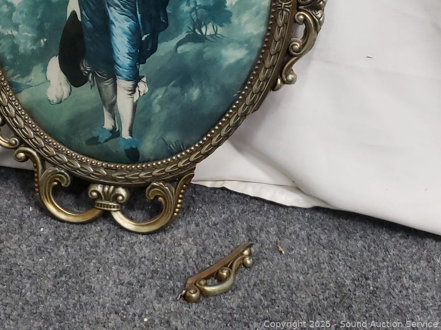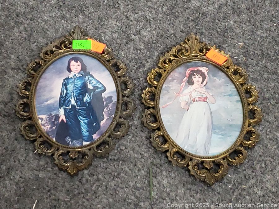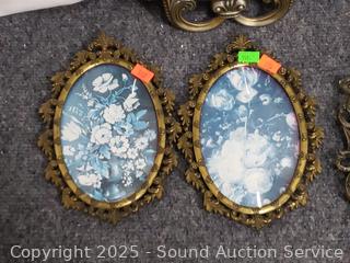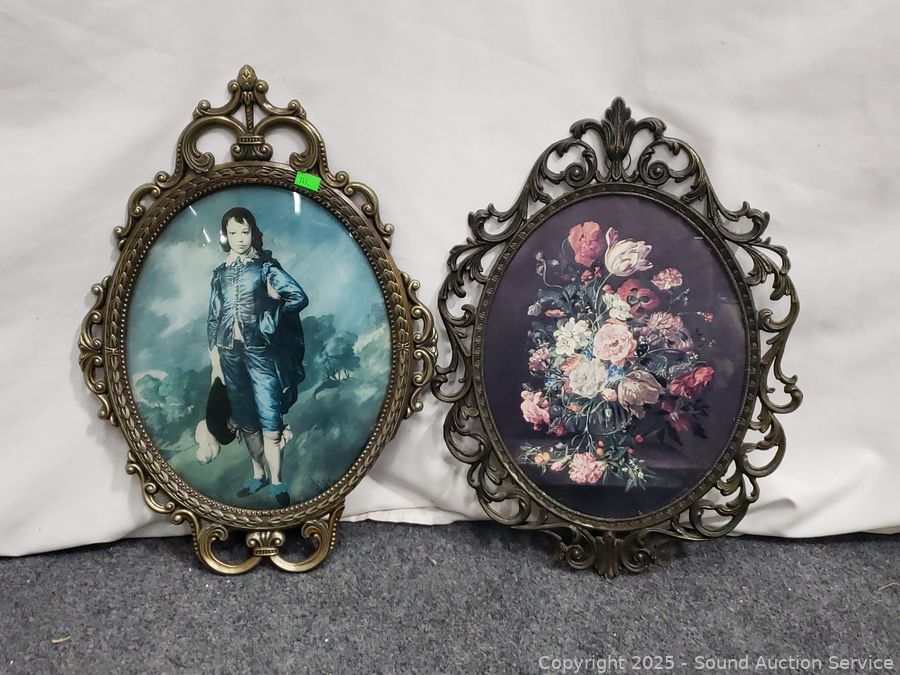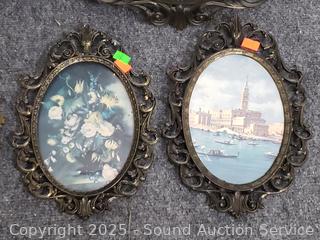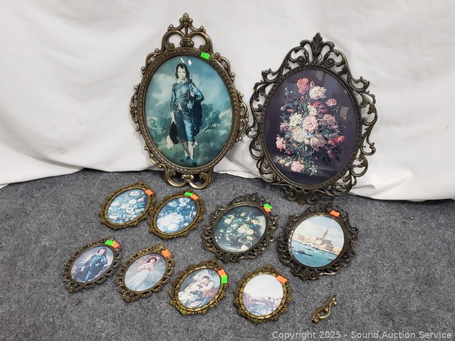 Lot #0149: 10pc Vintage Floral, Blue Boy Prints w/Cast Metal Frames
