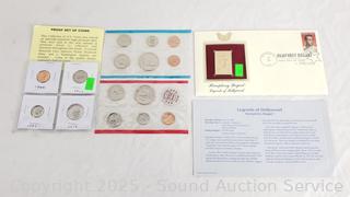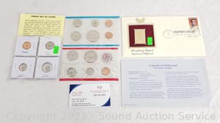 1964-79 mixed date proof set, Humphrey Bogart Legends of Hollywood 1997 FDI gold stamp. ATTN: We are not coin or currency experts or graders, please use your own judgement when bidding.