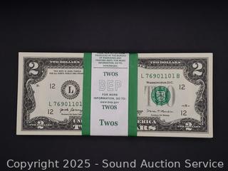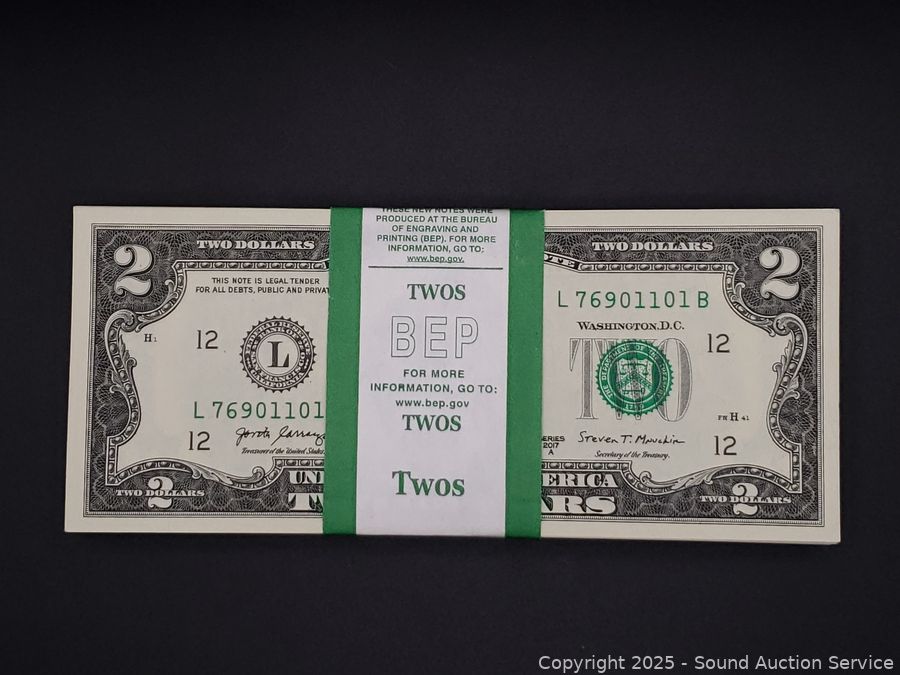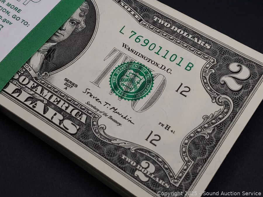 Lot #0095: $200 2017A Sequential Serial Uncirculated $2 Bank Notes