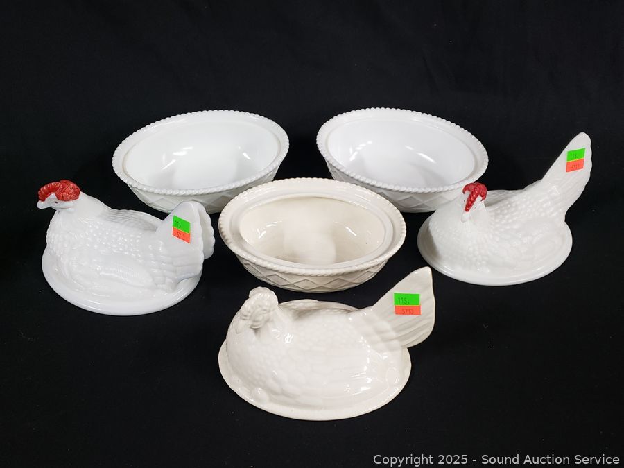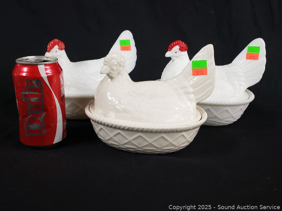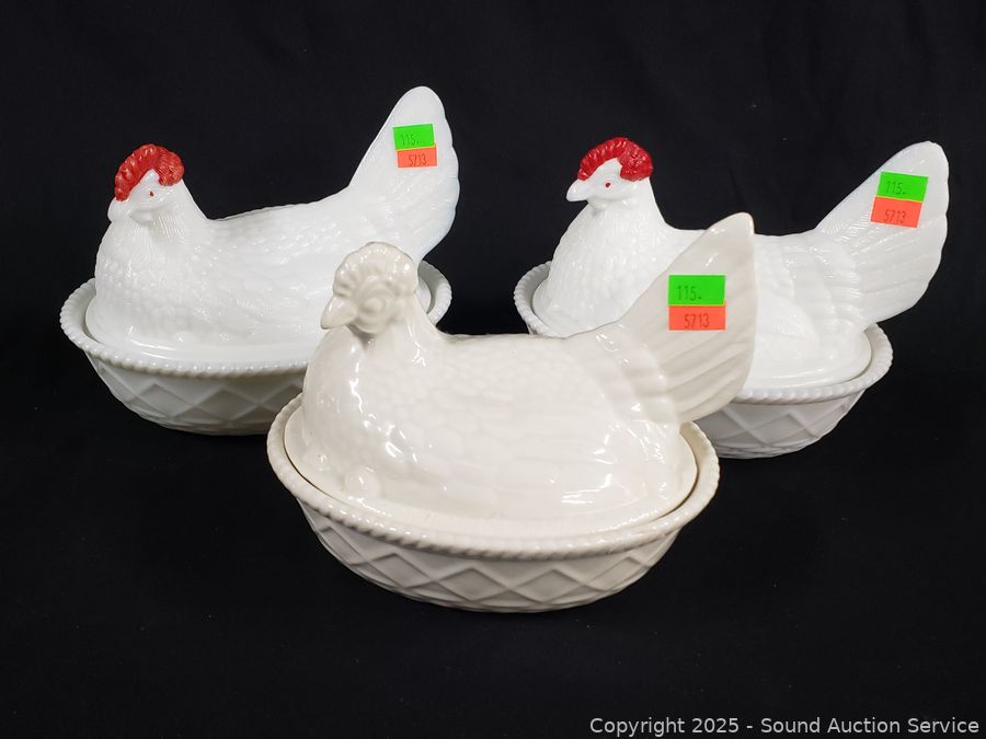 Lot #0115: 3 Milk Glass Hen-on-Nests