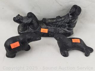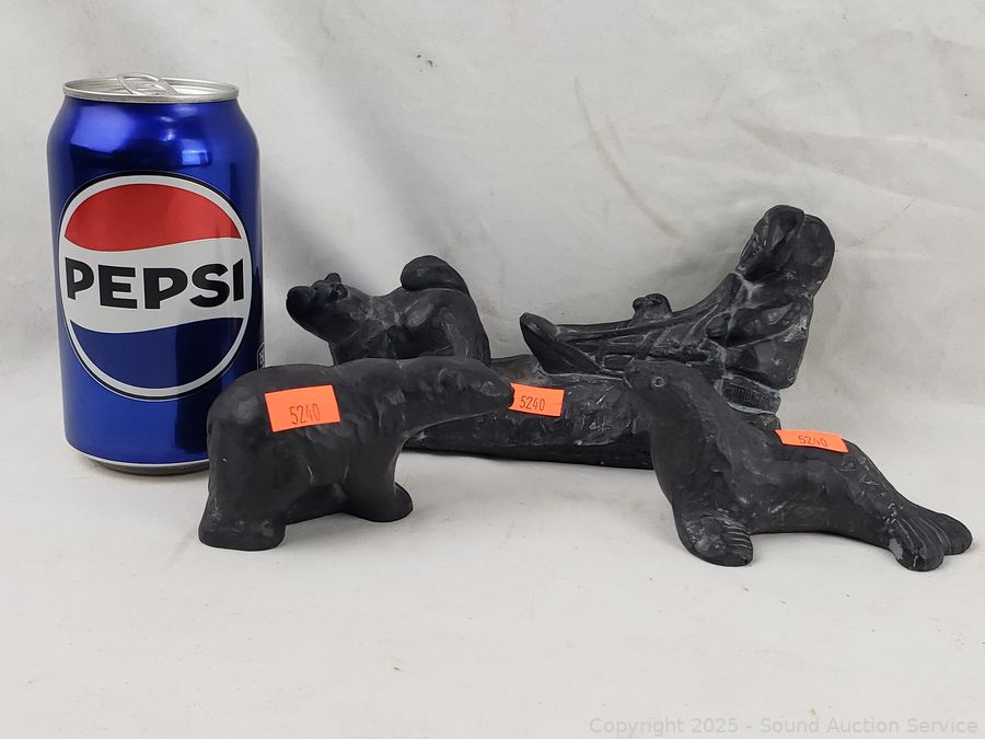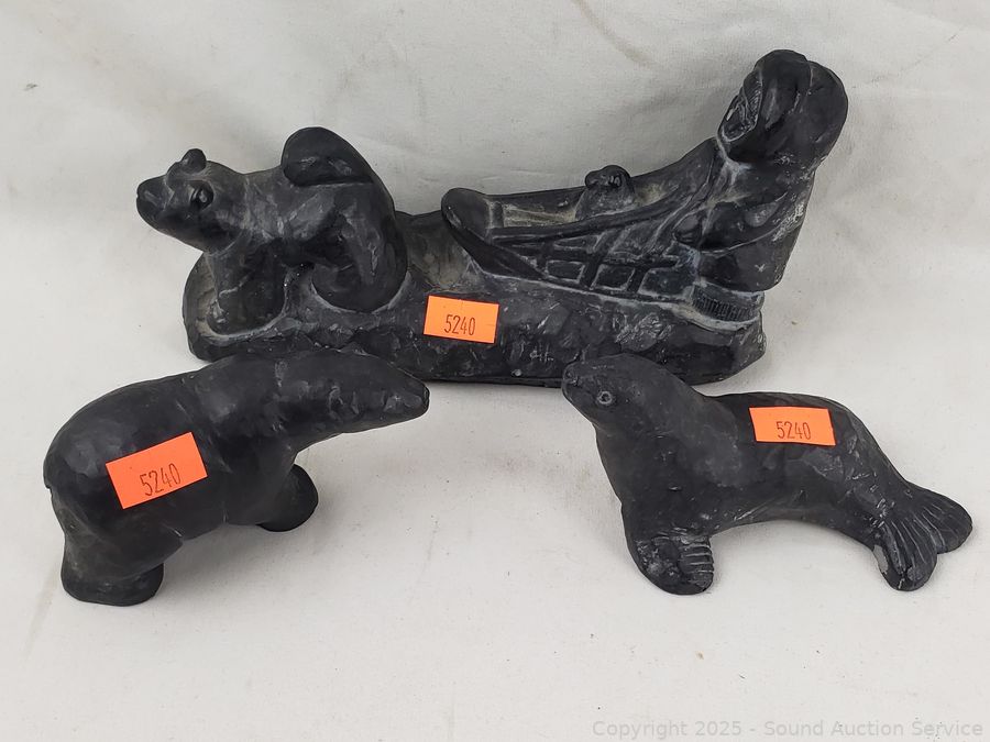 Lot #0175: 3pc Handcrafted Pottery Eskimo, Bear, Seal Figures