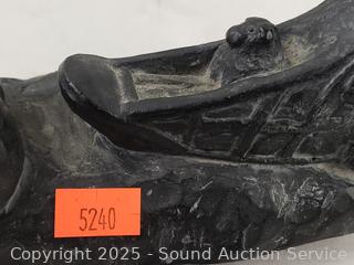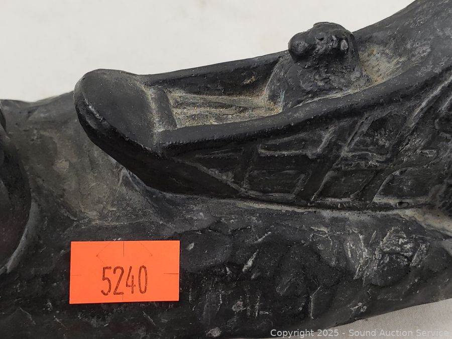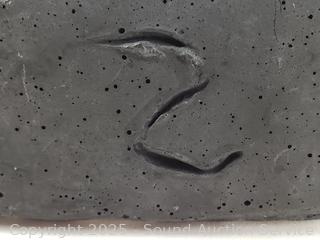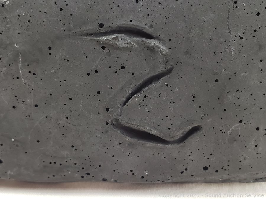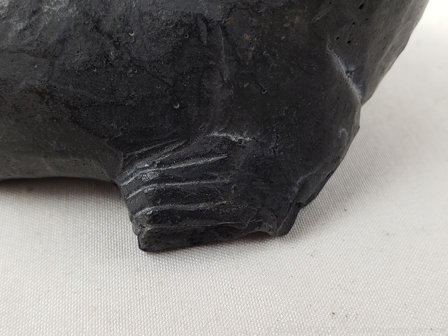 Has an embossed signature/maker's mark on the bottom. Approx. 2" to 3.5" H x 3.5" to 7" L.