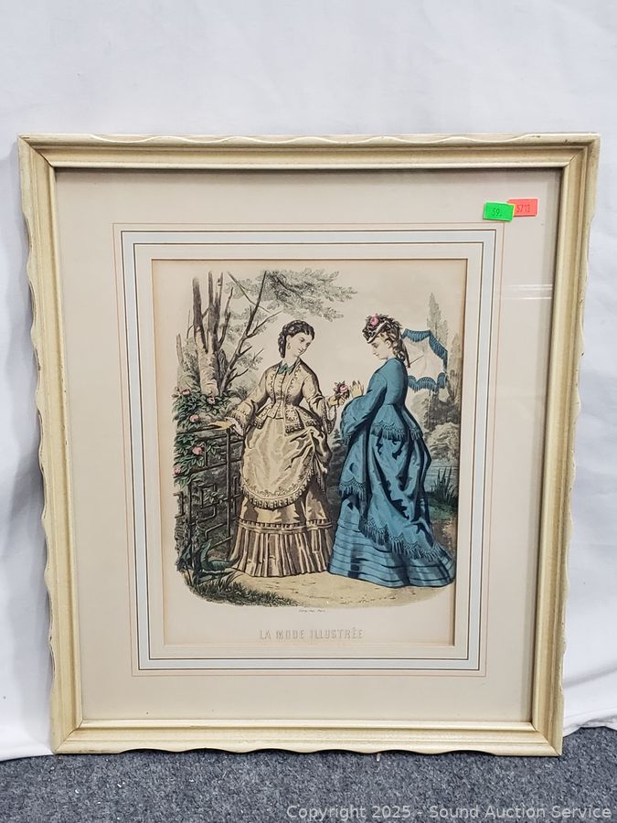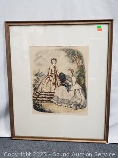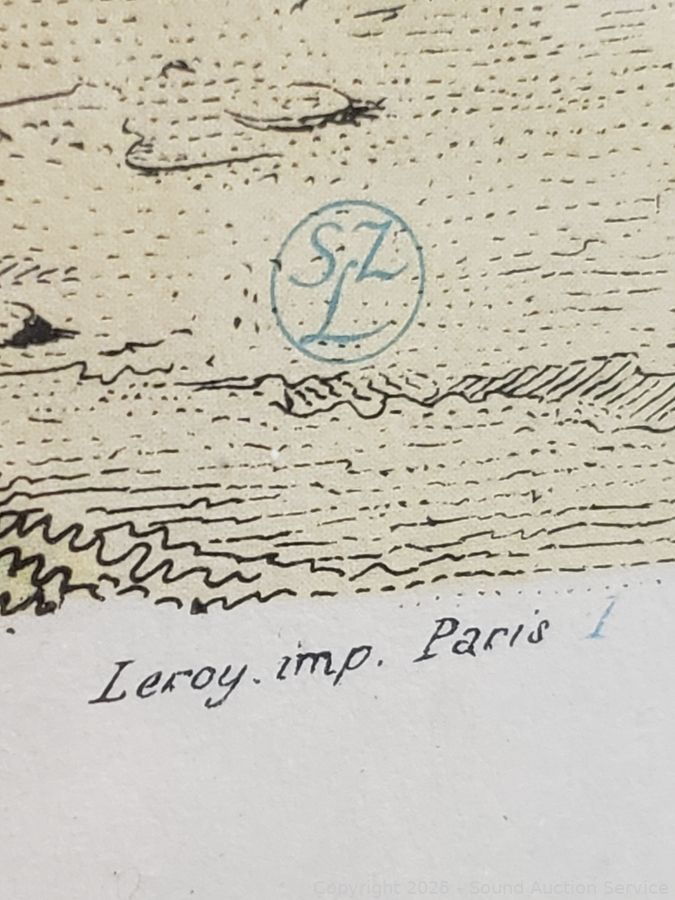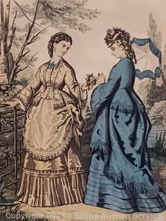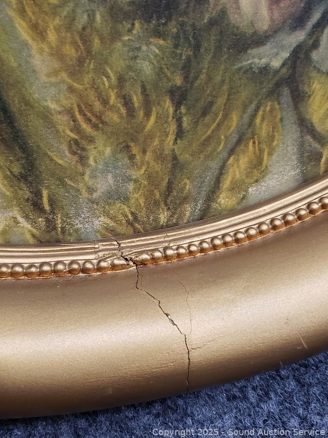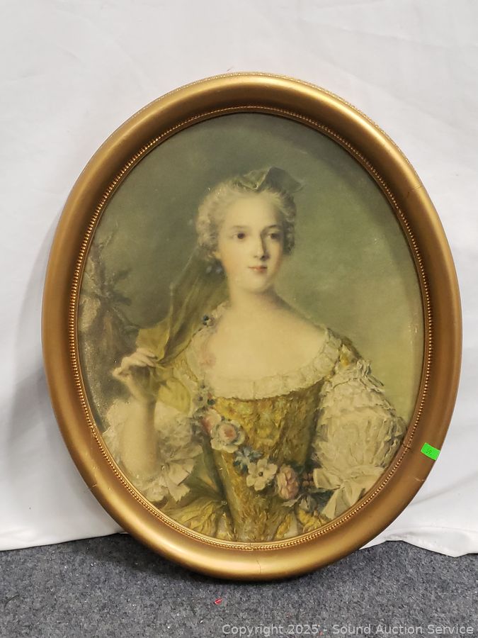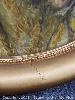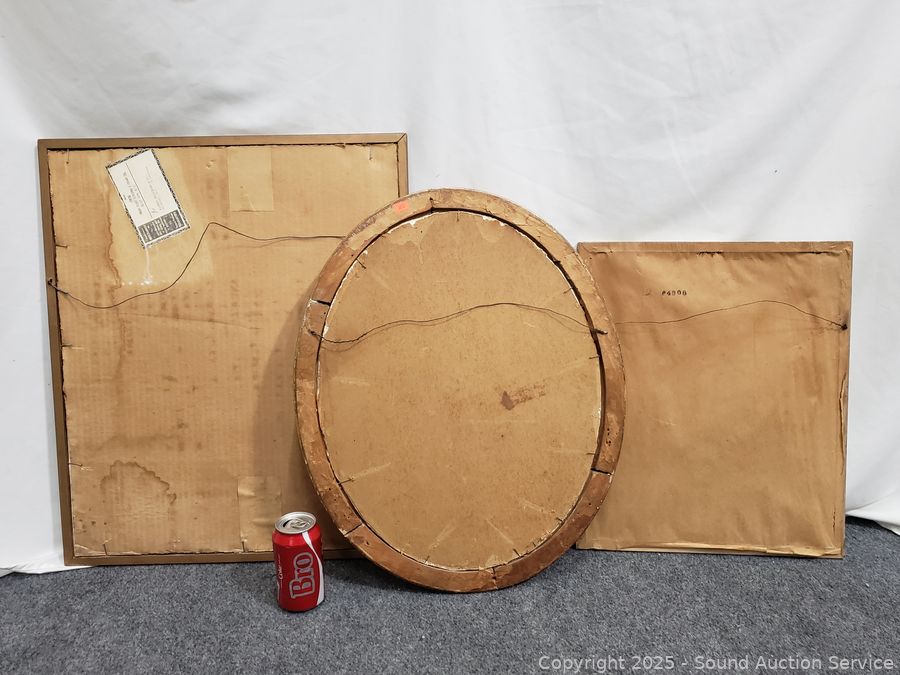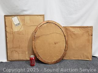 To Paris France etchings, hand tinted. Oval portrait has a broken, repaired frame. 18" x 15", 22" x 18", 25" x 20.5".