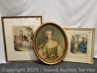 Lot #0059: 3pc Vintage Victorian Etching Print Portrait Artwork