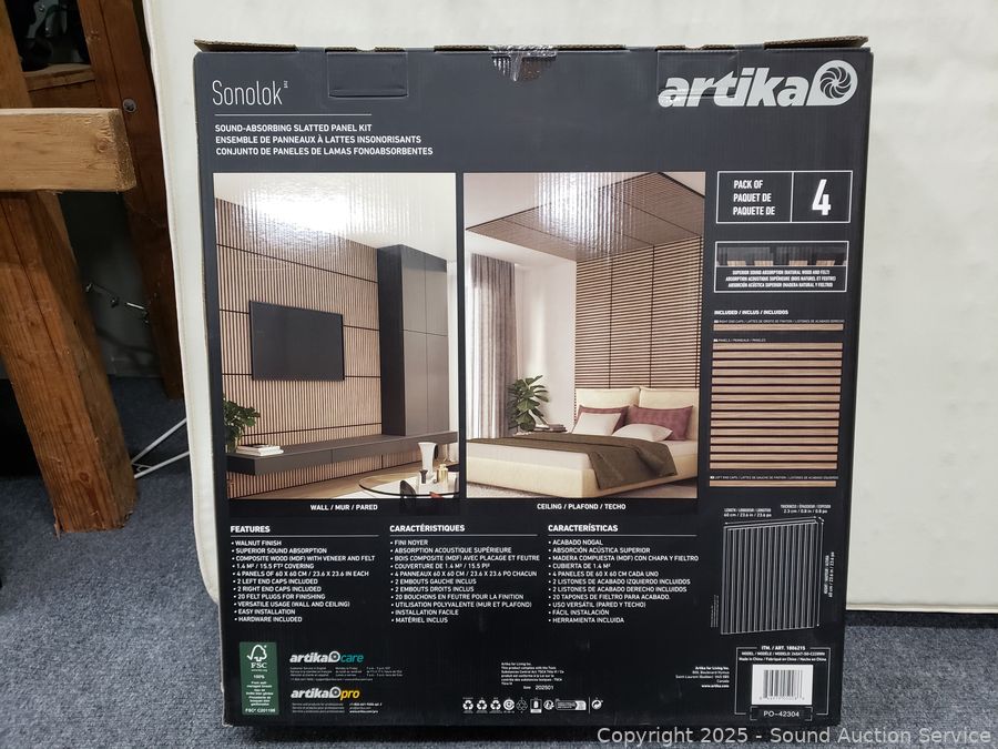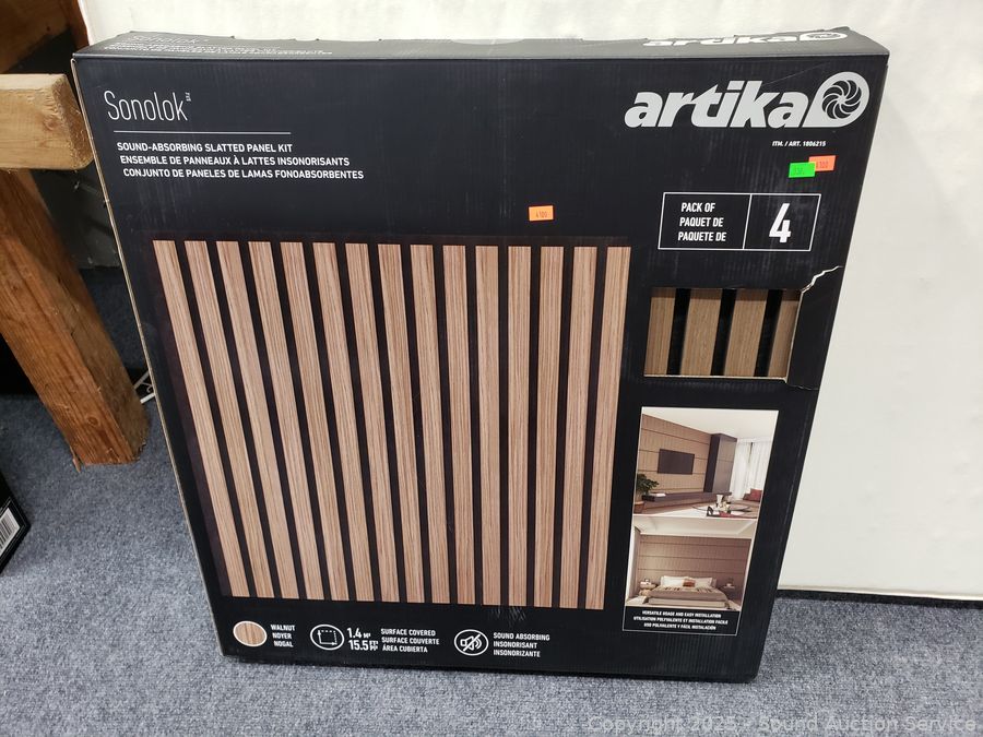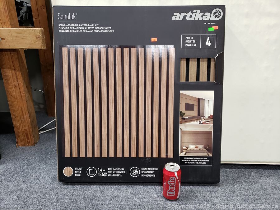 Lot #0336: 4pk Sonolok Walnut Sound-Absorbing Slatted Panel Kit