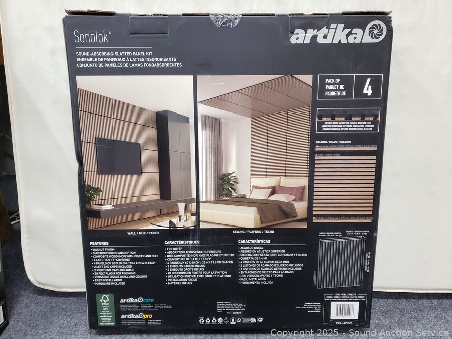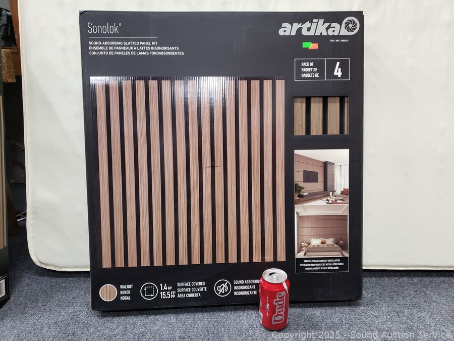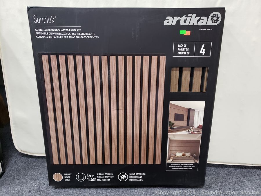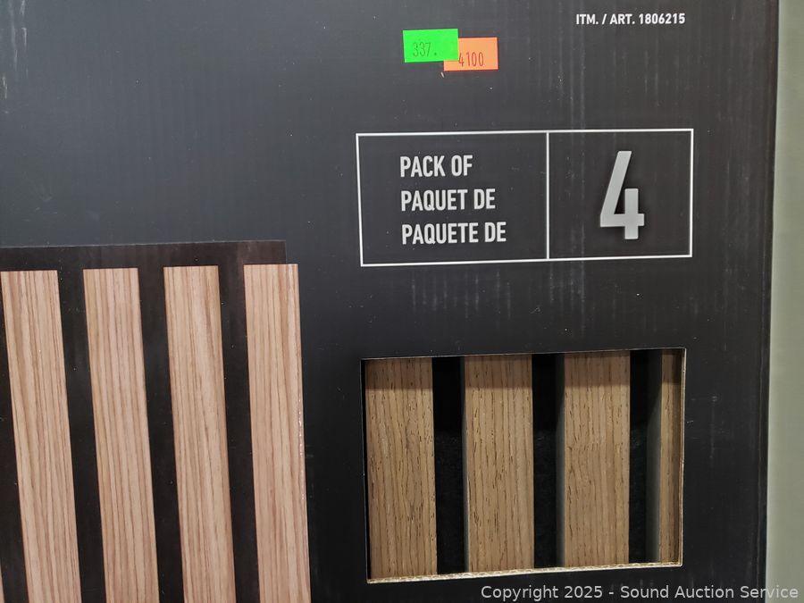 Lot #0337: 4pk Sonolok Walnut Sound-Absorbing Slatted Panel Kit