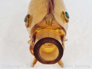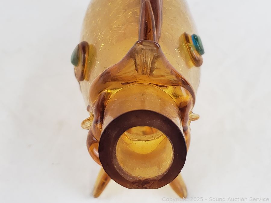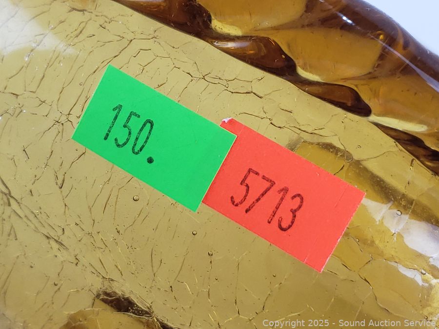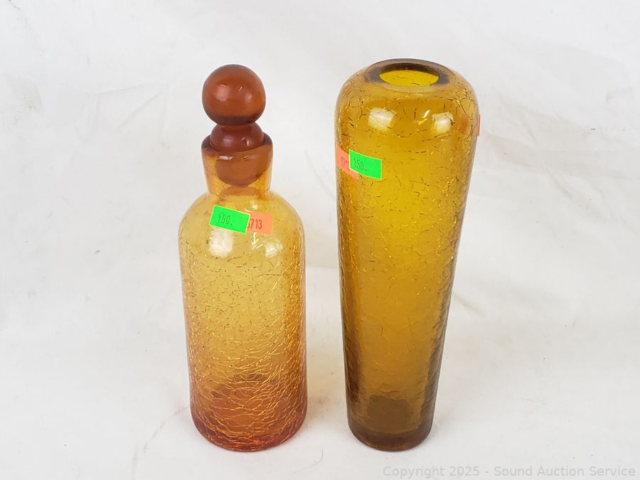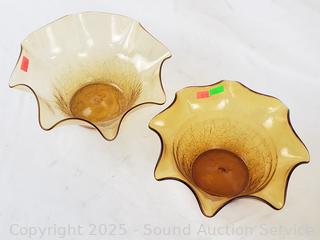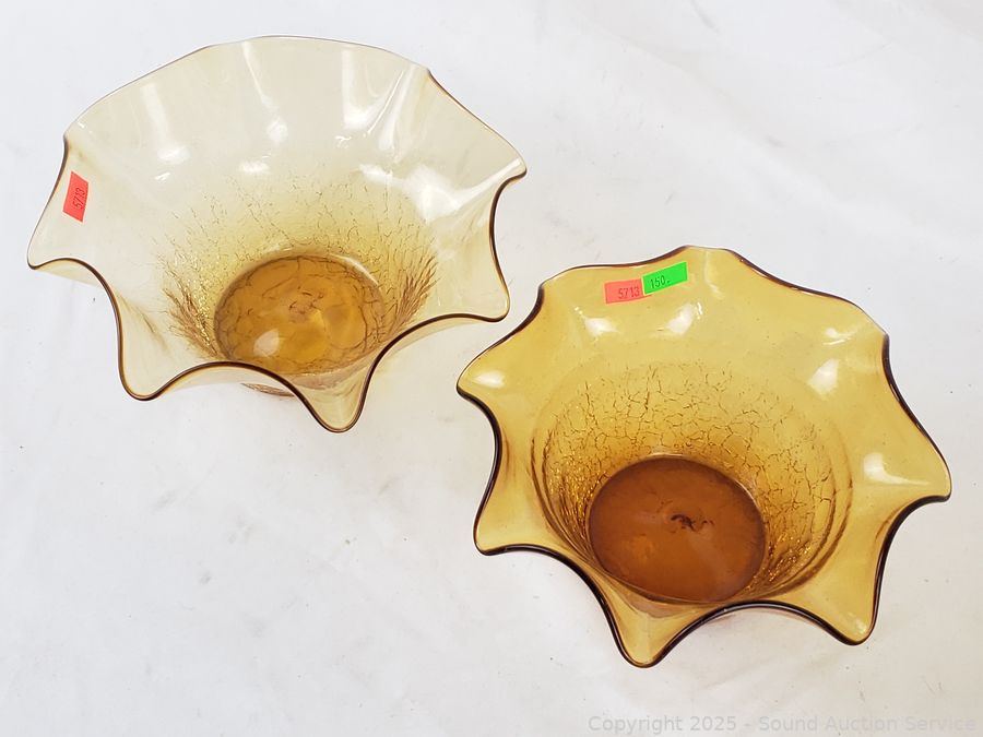Lot #0150: 5pc Crackle Amber Glassware Decor