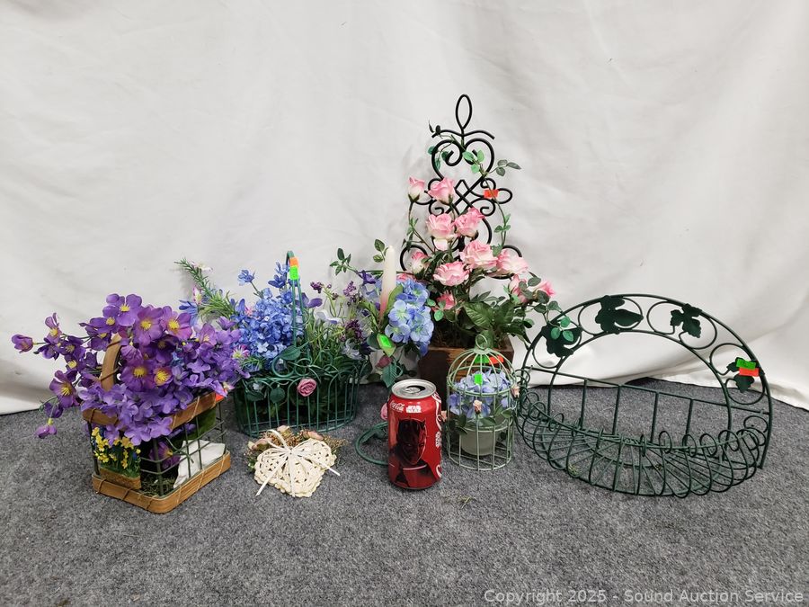 Lot #0173: 6pc Wire Frame Faux Houseplant Decor