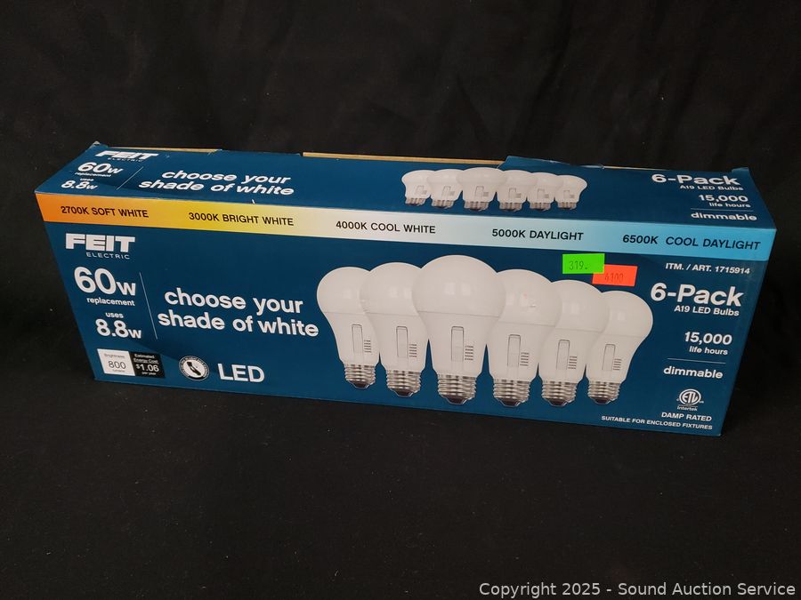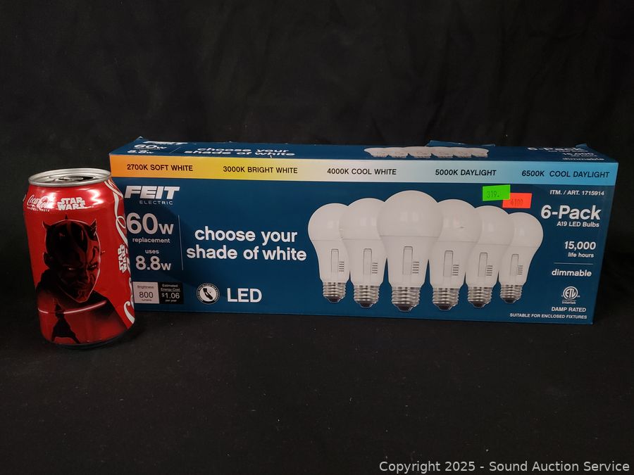 Lot #0319: 6pk Feit LED Dimmable Light Bulbs
