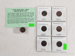 Lot #0074: 7 Antique 1863-1905 Indian Head Cents