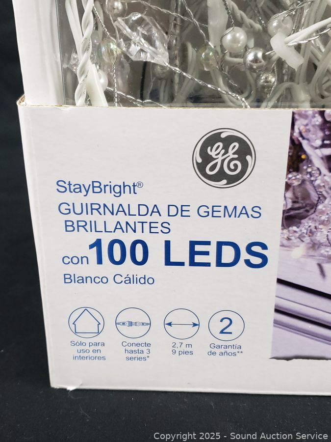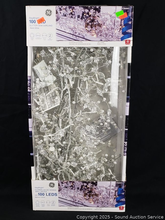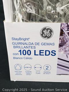 Lot #0255: 9ft GE Stay Bright 100 LED Glitter Gem Garland