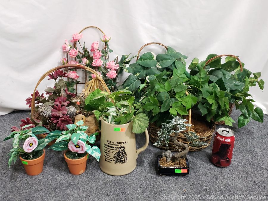 Lot #0145: 9pc Assorted Faux Houseplants