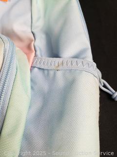 Strap is torn on seam, looks like an easy fix, some minor dirty spots from use. 18" x 12".