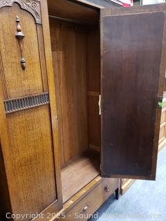 Lot #0001: Antique Oak Armoire