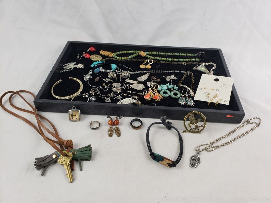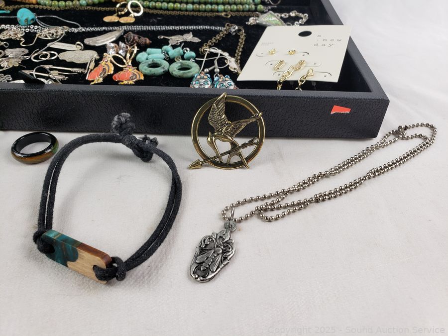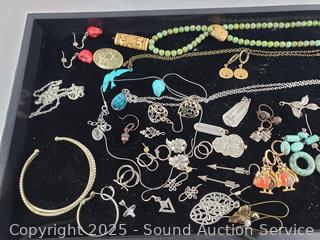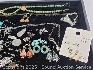 Tray not included. Earrings, necklaces, bracelets, etc. Refer to photos for lot contents, more details.