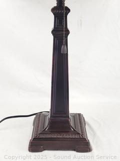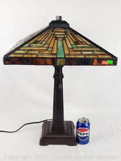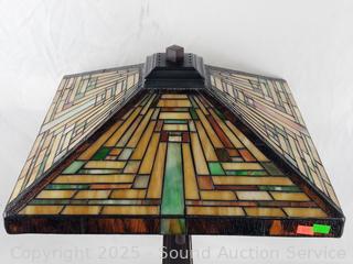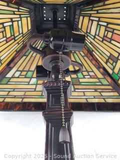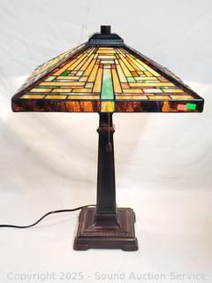 Lot #0046: Bronze Finish Stained-Glass Shade Table Lamp