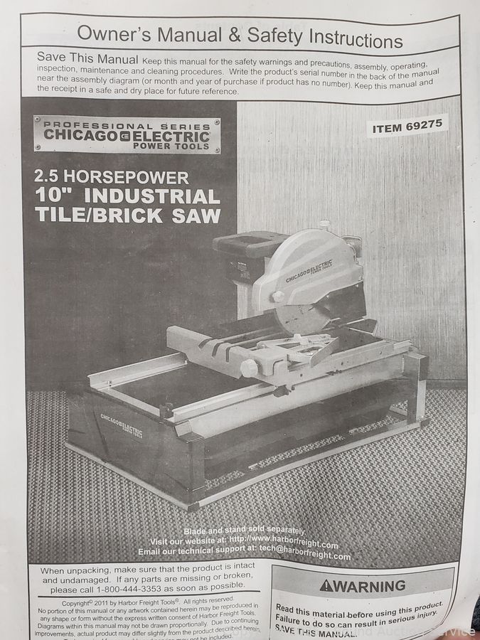 Lot #0025: Chicago Electric 10" Industrial Tile/Brick Saw
