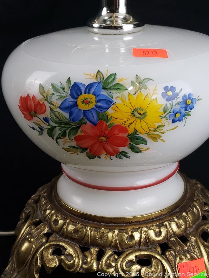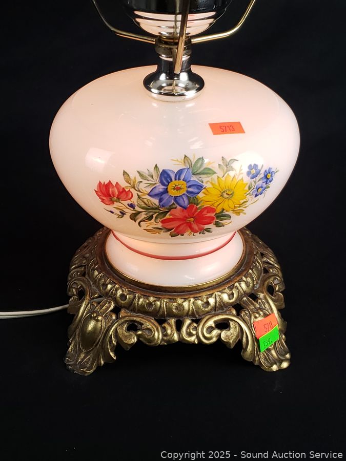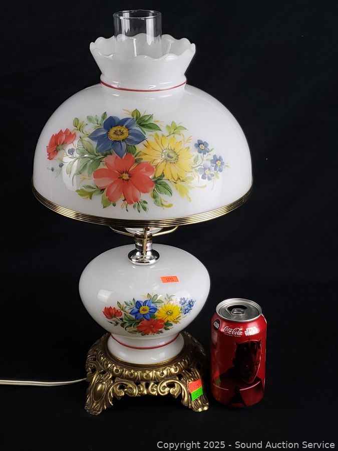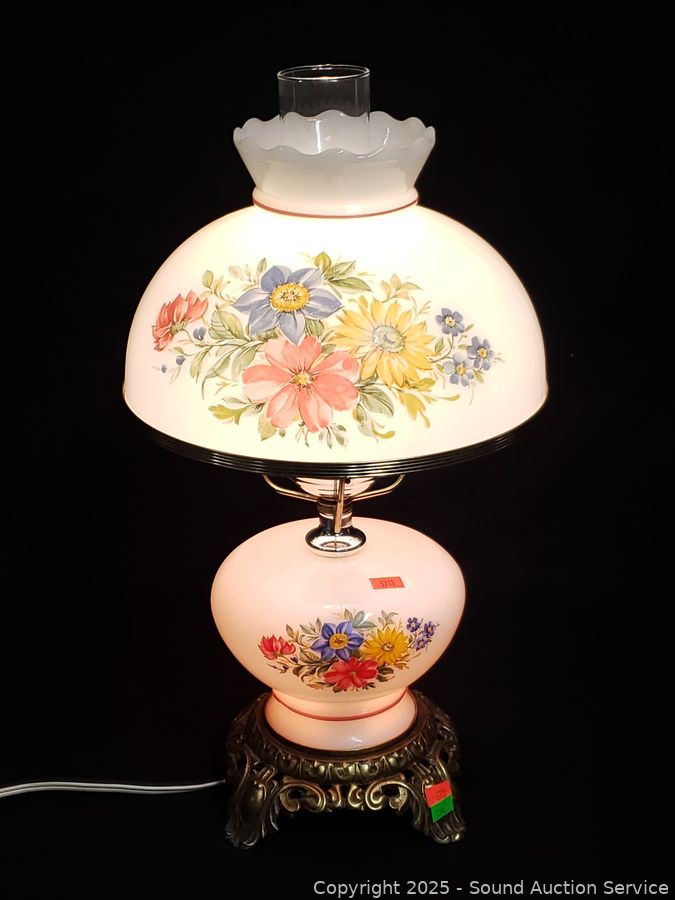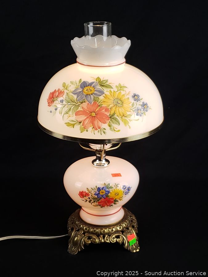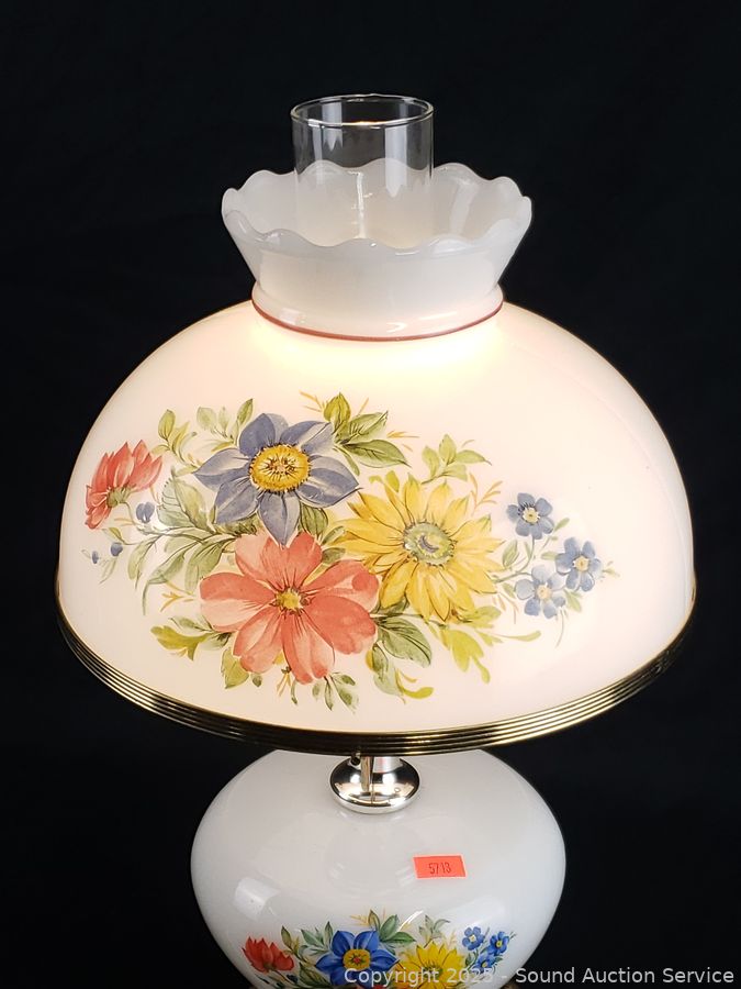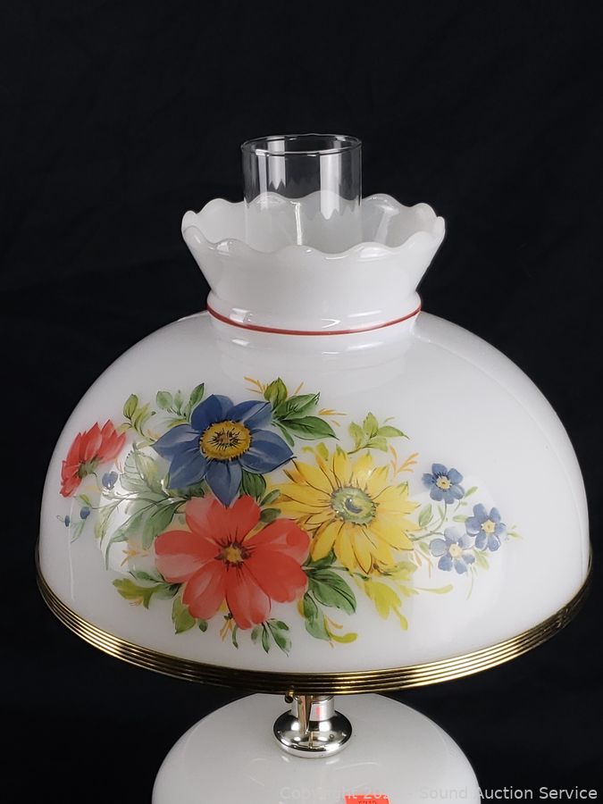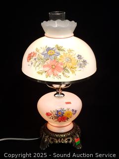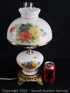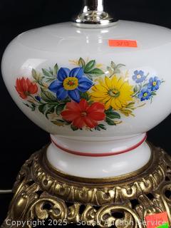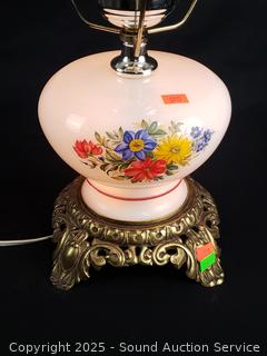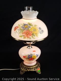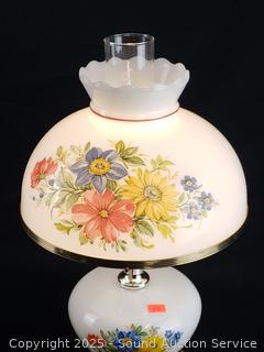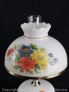 Lot #0239: Floral Printed Glass Shade Table Lamp