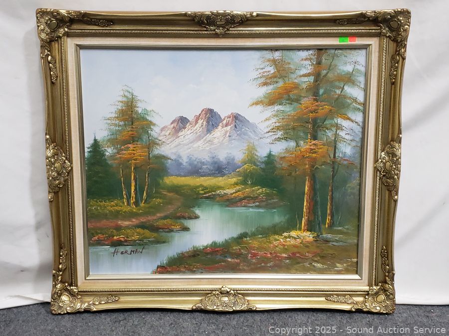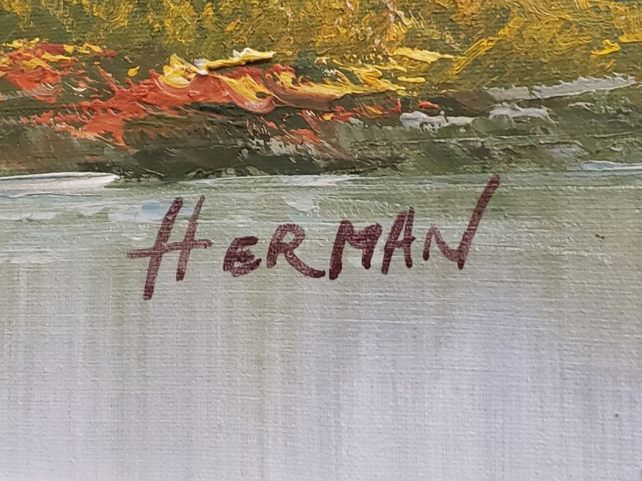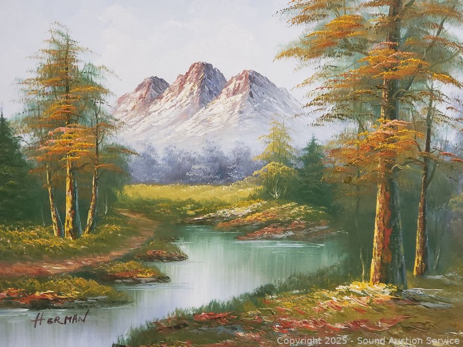 Lot #0060: Original Signed Herman Canvas Mountain Creek Scene Painting