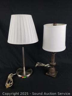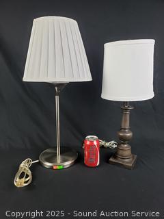 19.5" & 23" tall, 8" & 11" Dia. shades. Both work.