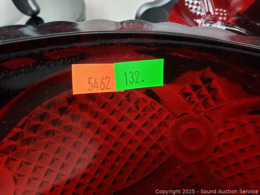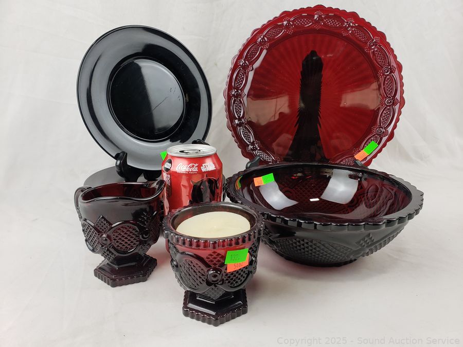 Lot #0132: 10 Vintage Ruby Avon Plates, Cream, Sugar, Bowl
