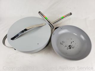 Lot #0327: 2 Caraway 10" & 11.5" Skillets w/1 Lid