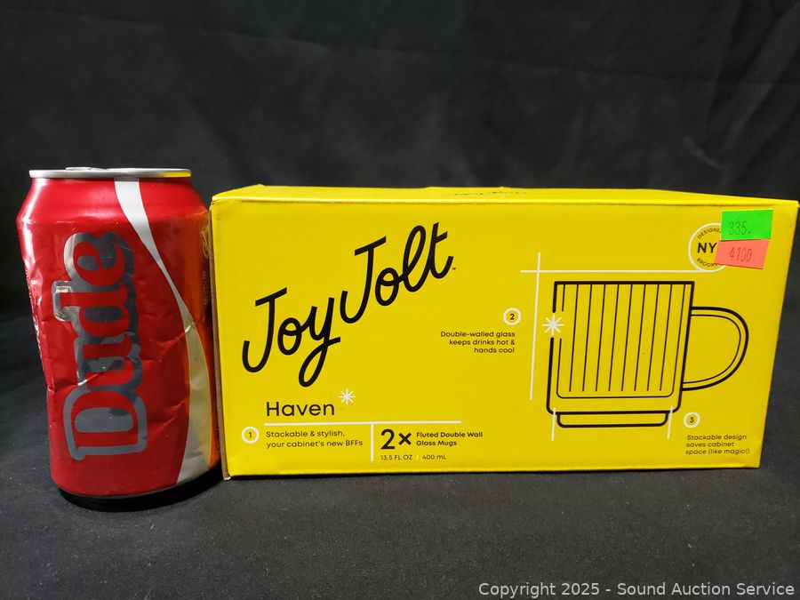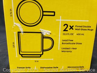 Lot #0335: 2 Joy Jolt Haven Double Wall Glass Mugs